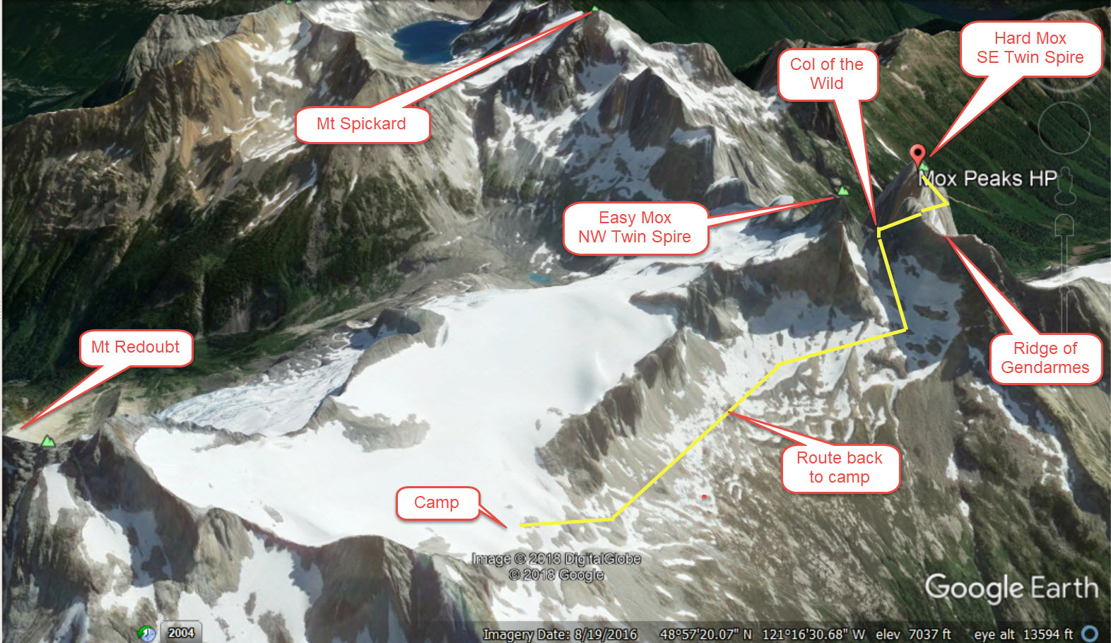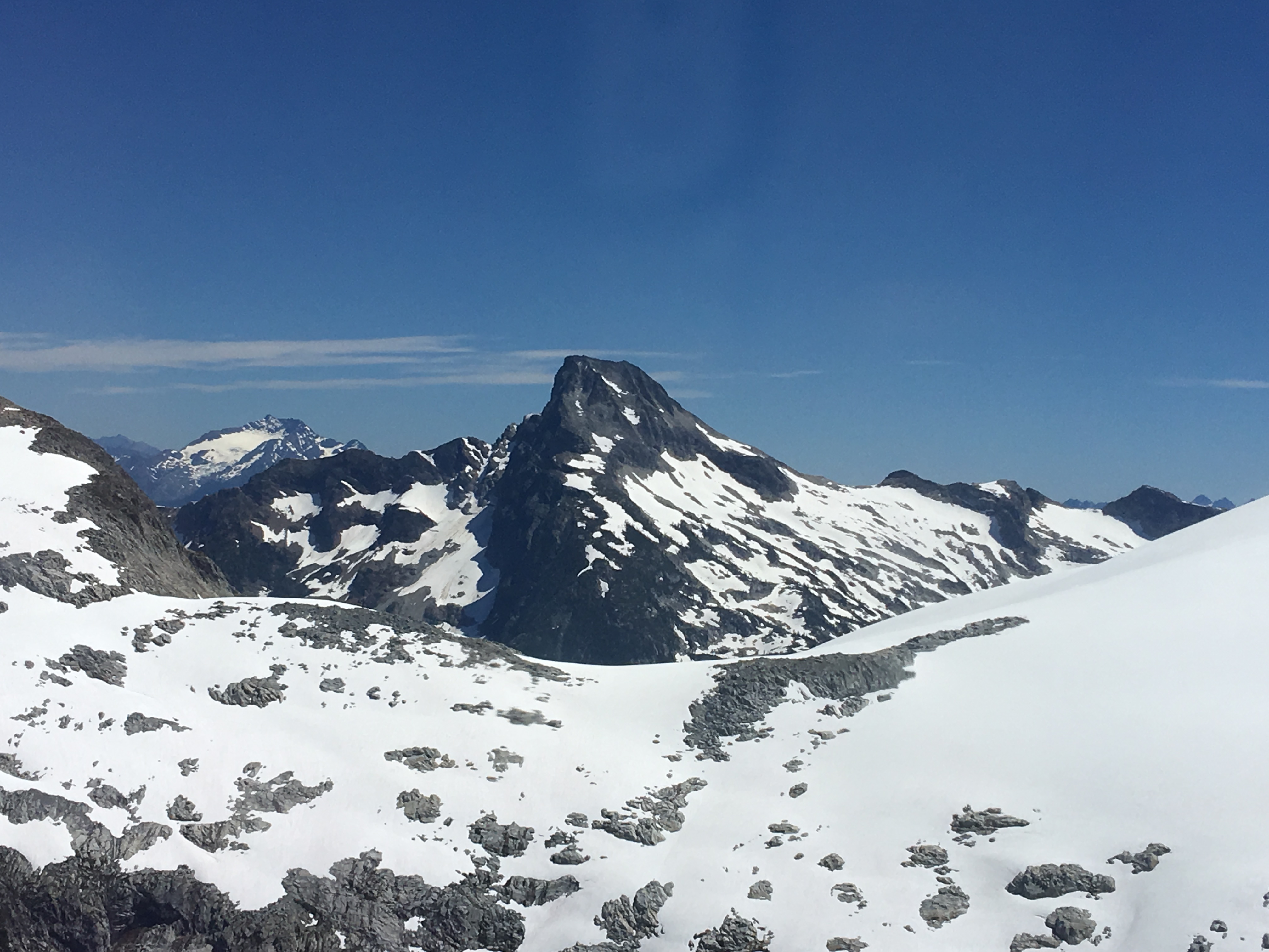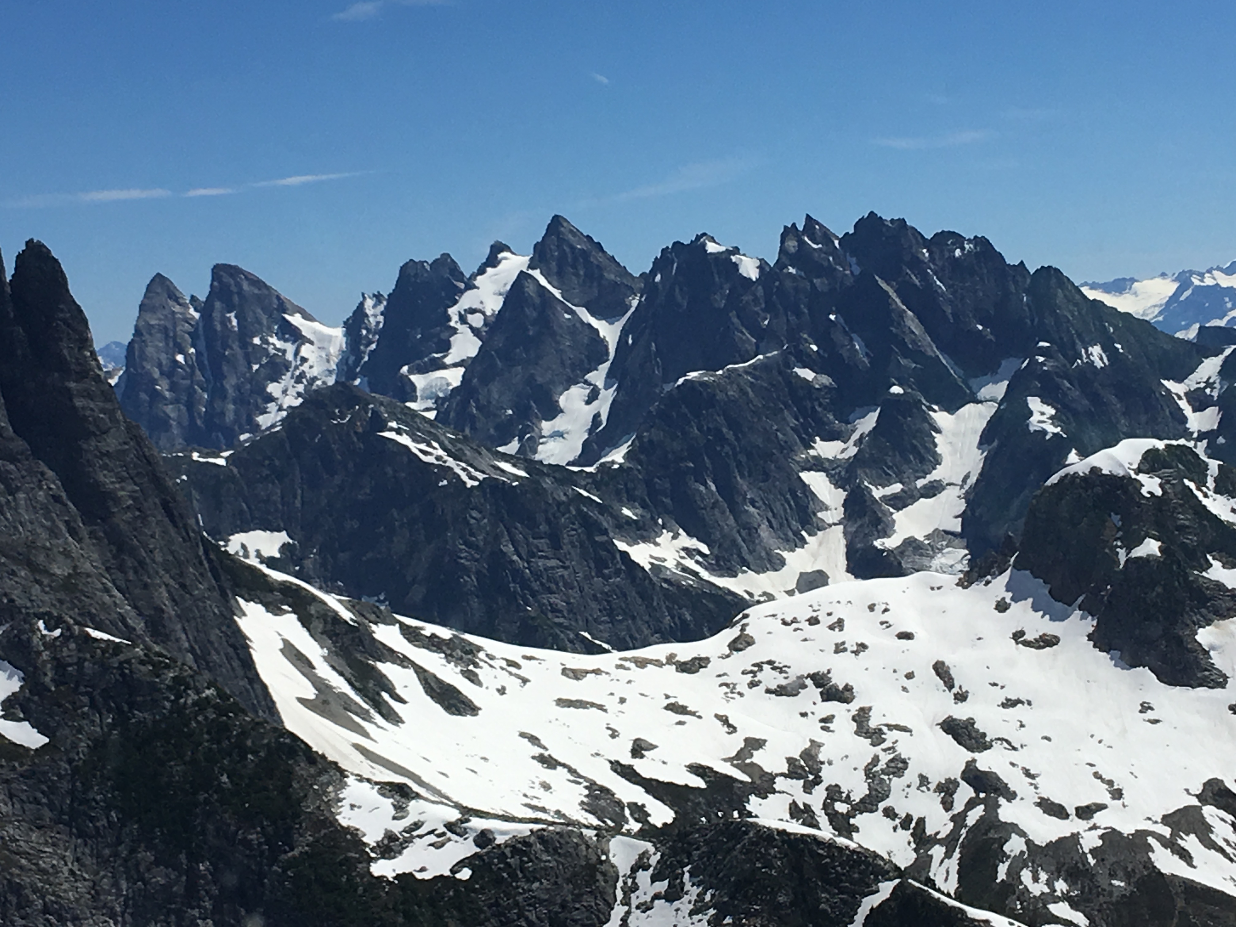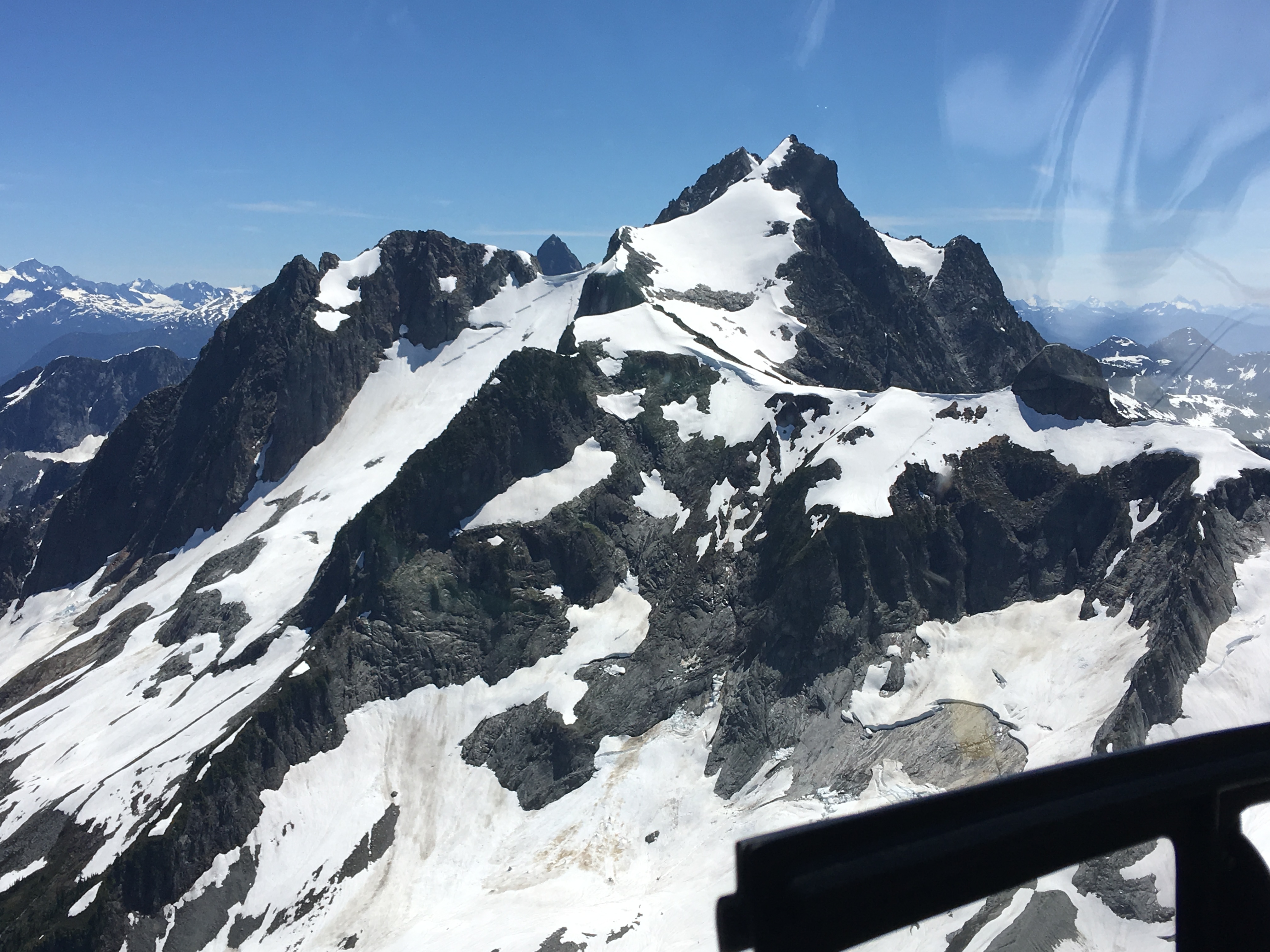 As we flew over the North Cascades, I was treated to an up close and personal view of Mt Challenger. We flew right over Perfect Pass between Whatcom and Challenger. We had camped there 3 weeks prior during the Picket Traverse. Then I was treated to views of Crooked Thumb and Phantom. There was the Southern Pickets with Pickell Pass and Picket Pass. The final treat was a fly by of Mt Despair. This would be the closest I would ever get to its summit. I promised Jim he would not have to repeat that climb.