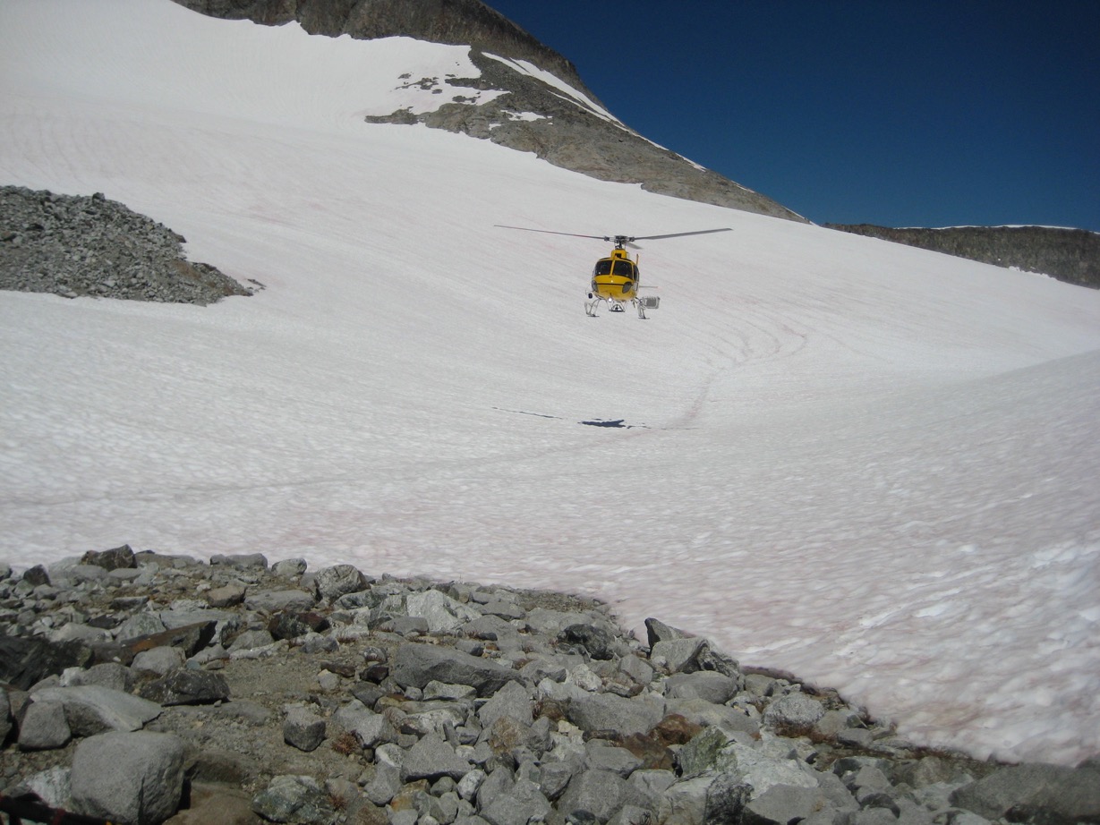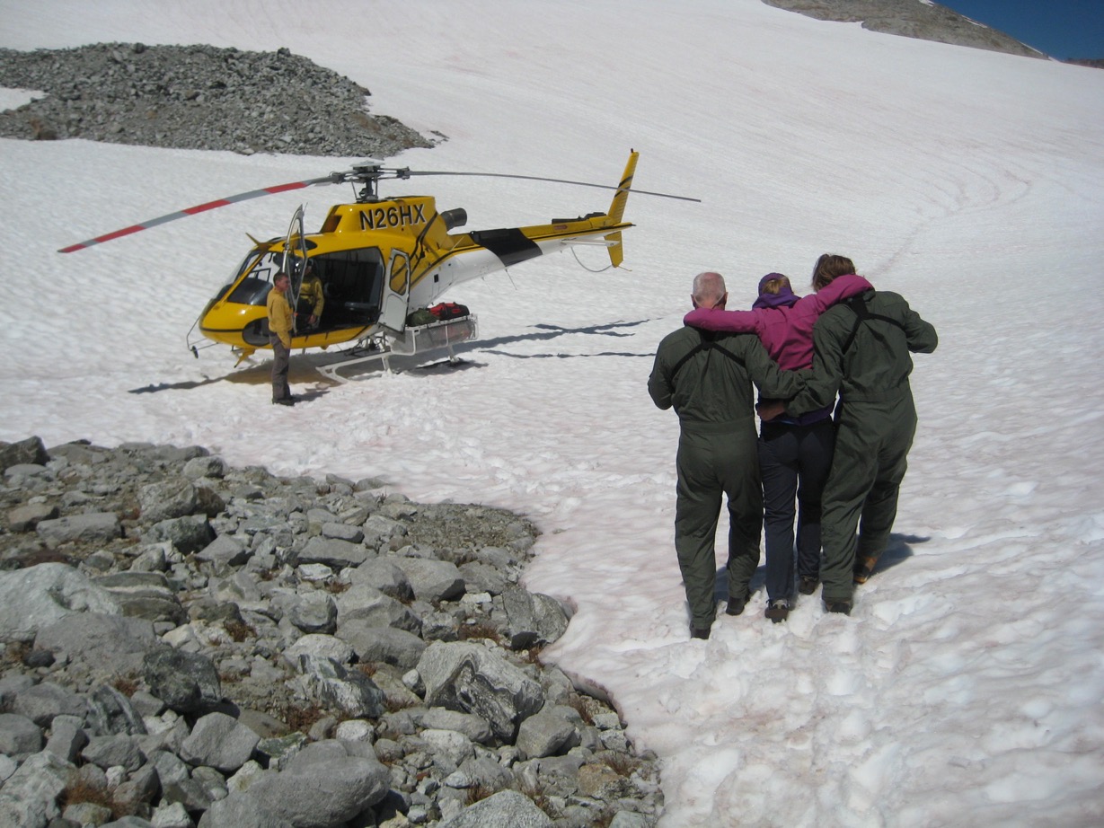 This whole communication made all of us so much more at ease. We knew the helicopter was not going to arrive until noon. We took our time eating breakfast and packing. The 4 climbers we had meet the day before on Hard Mox came over for a visit. Before they headed out, they want to make sure we didn’t need anything. They were totally willing to stay and help.