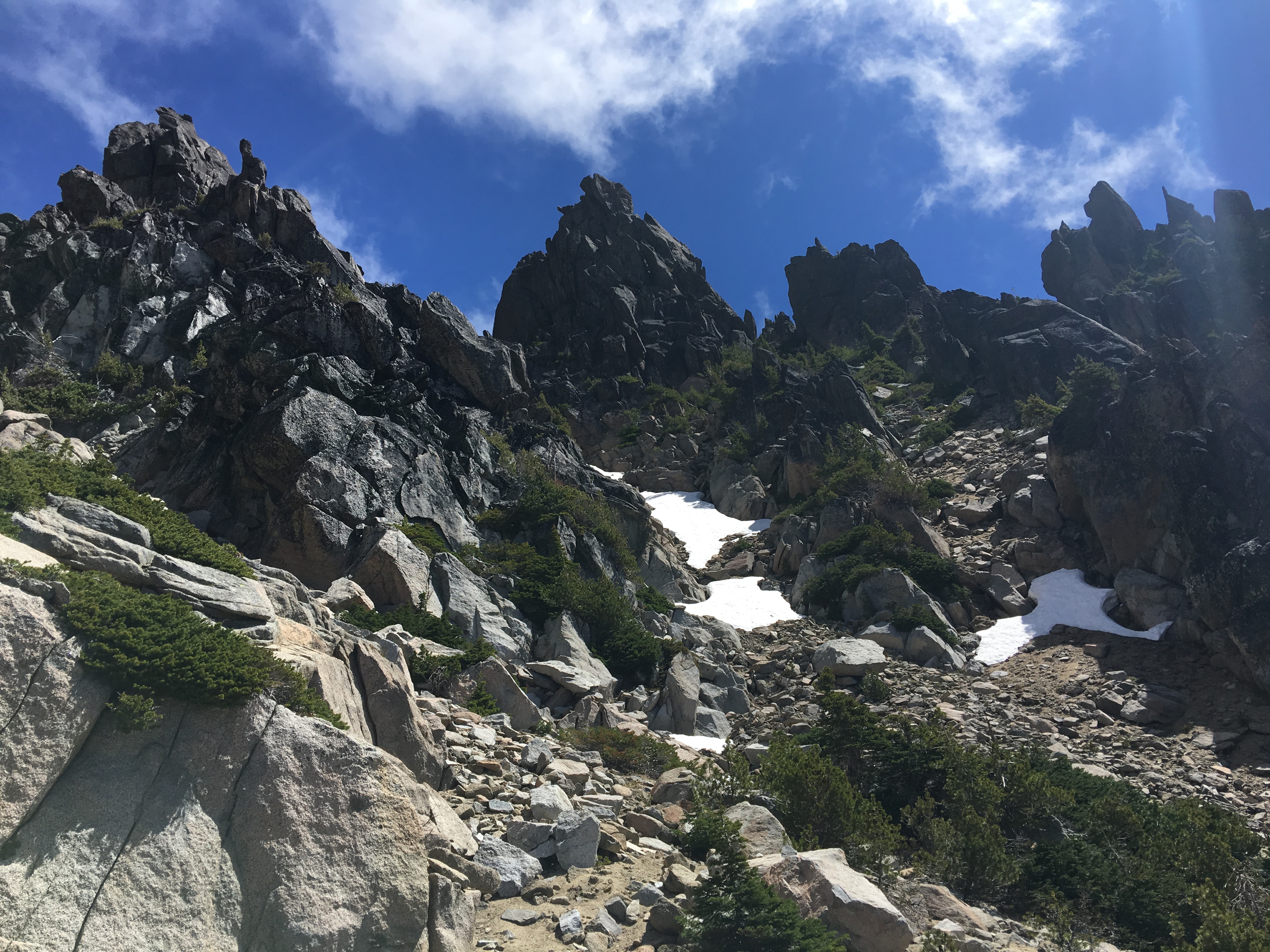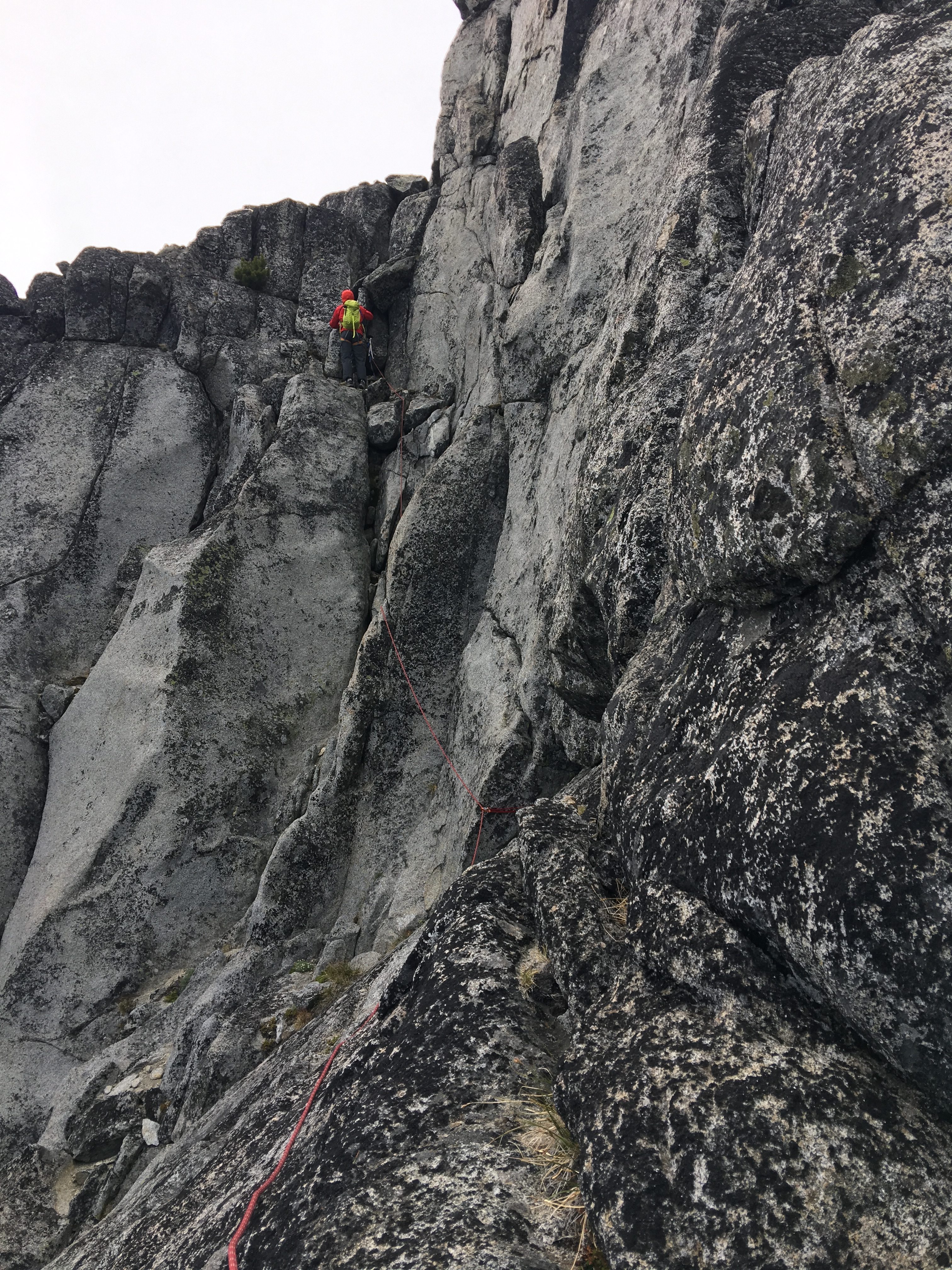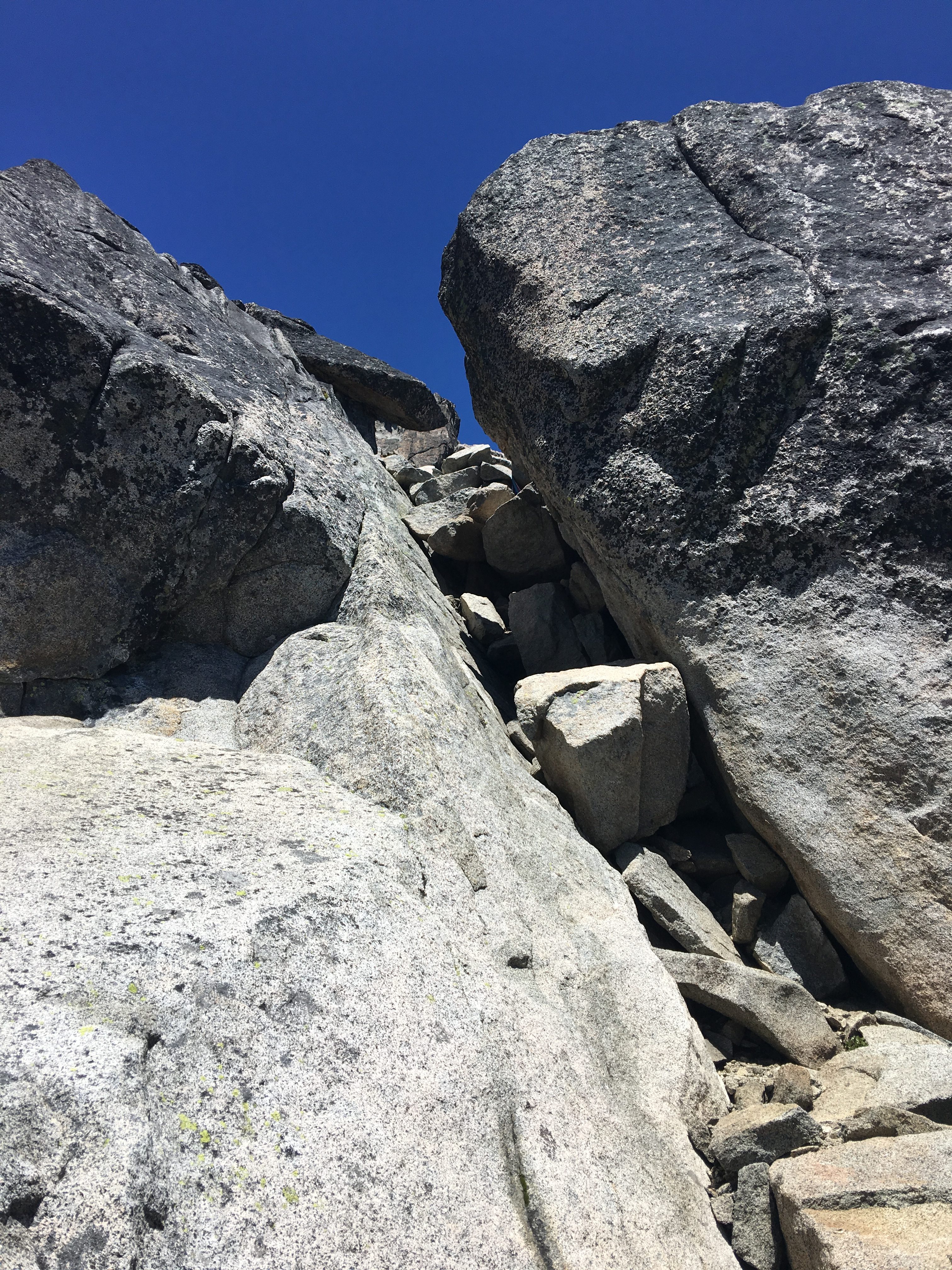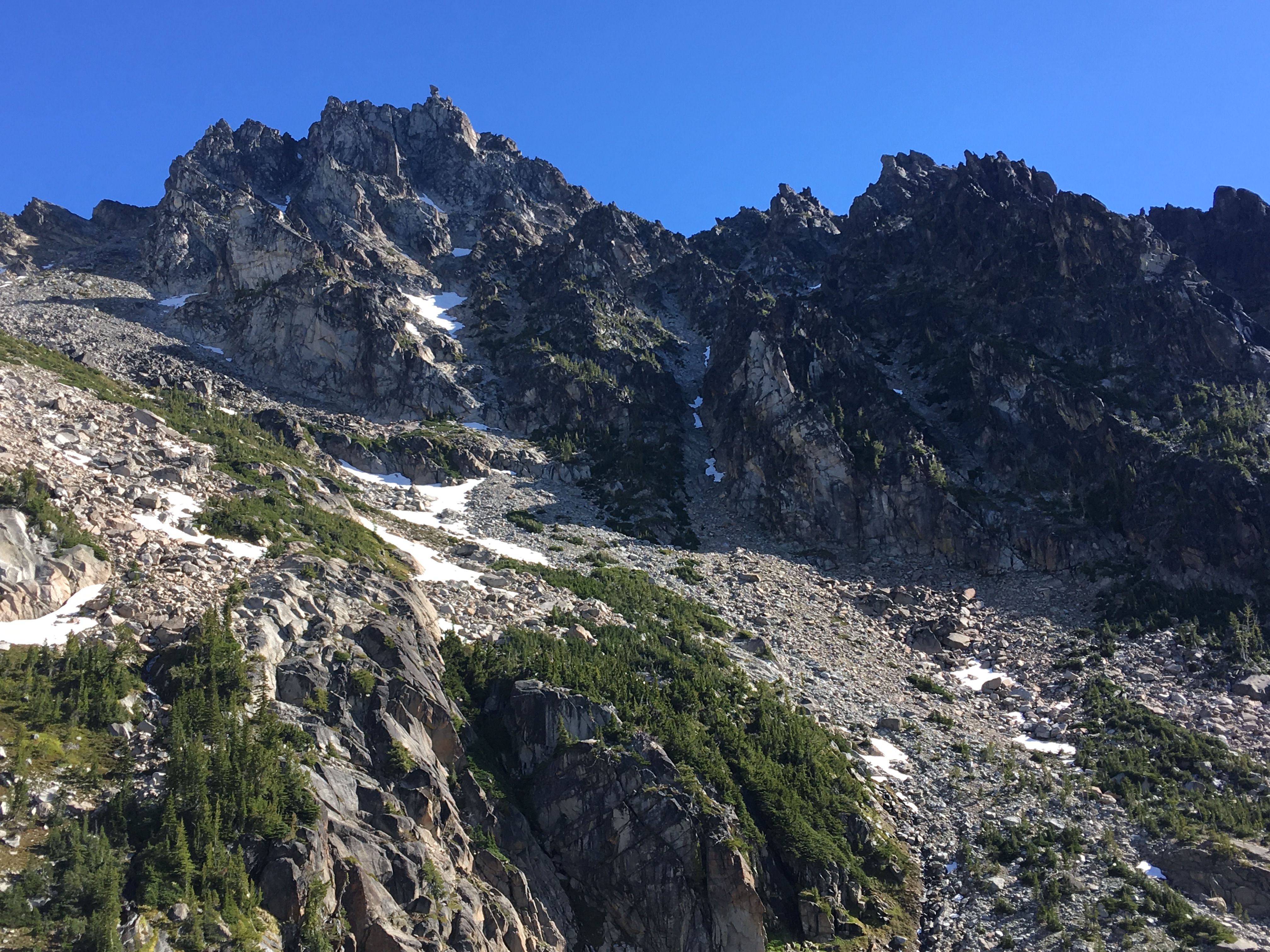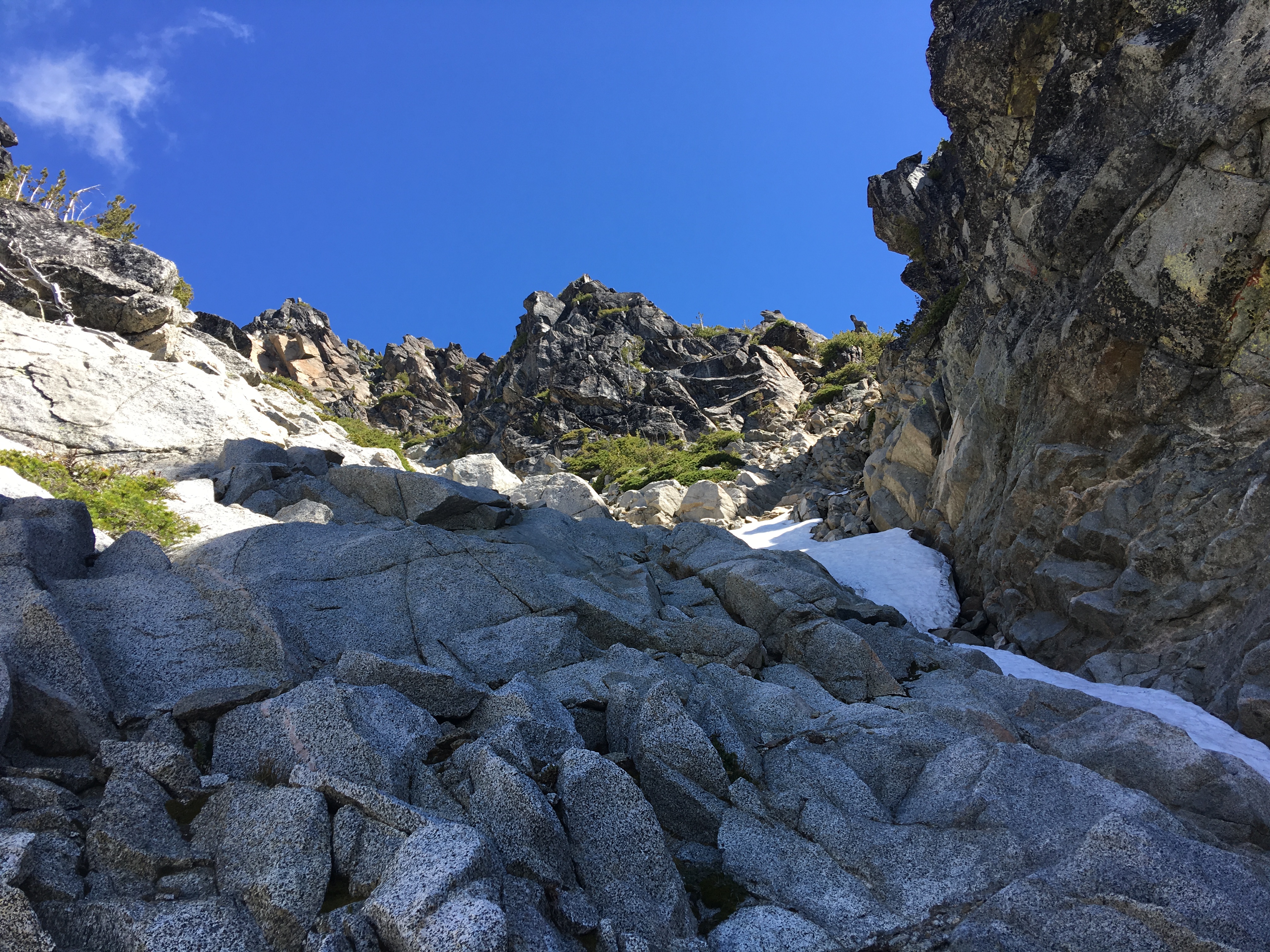 After taking a long break and climbing the gully complete with a couple of mots, we reached the East Ridge around 2pm which had great views of Argonaut and the other Enchantments peaks.