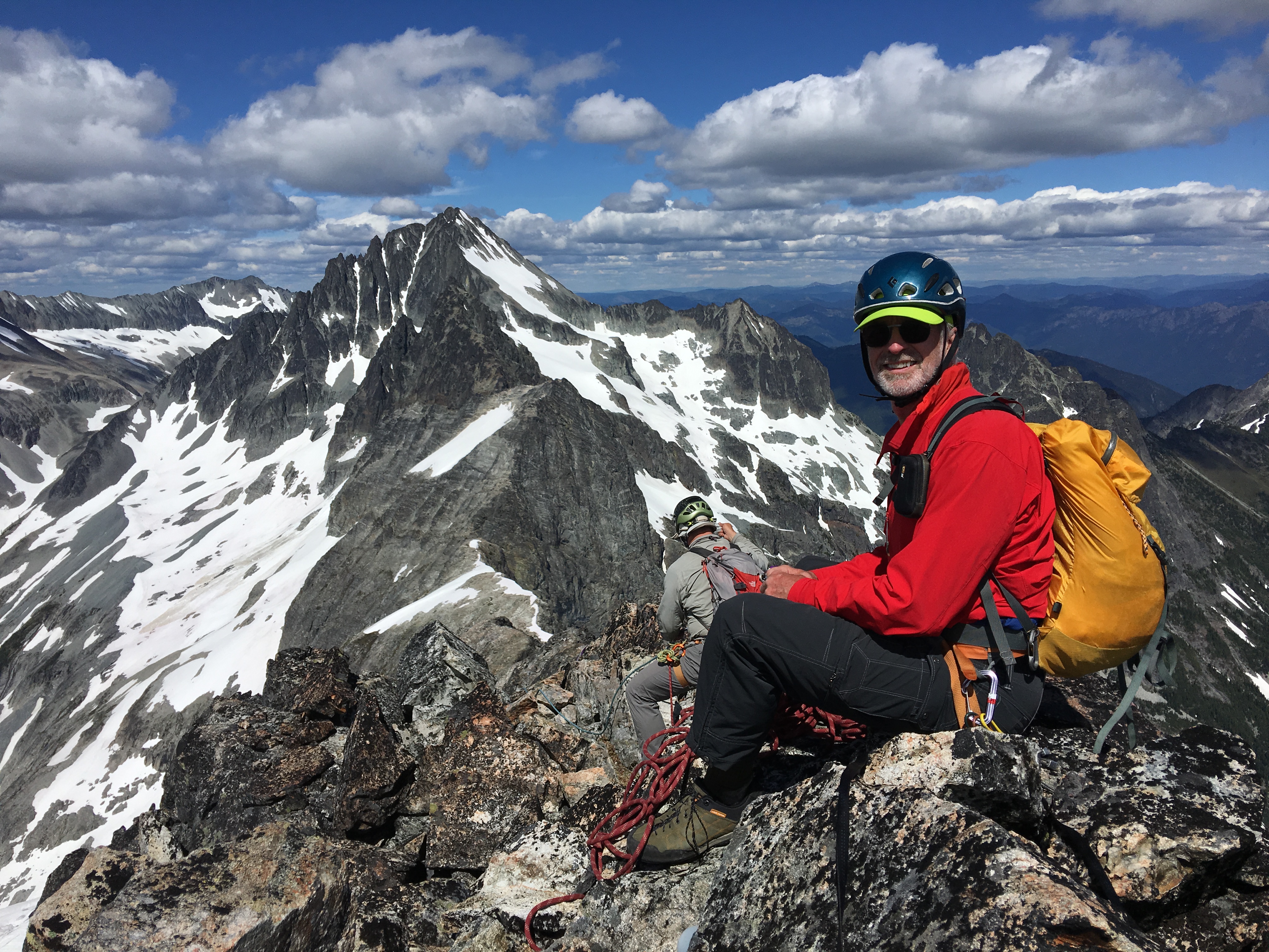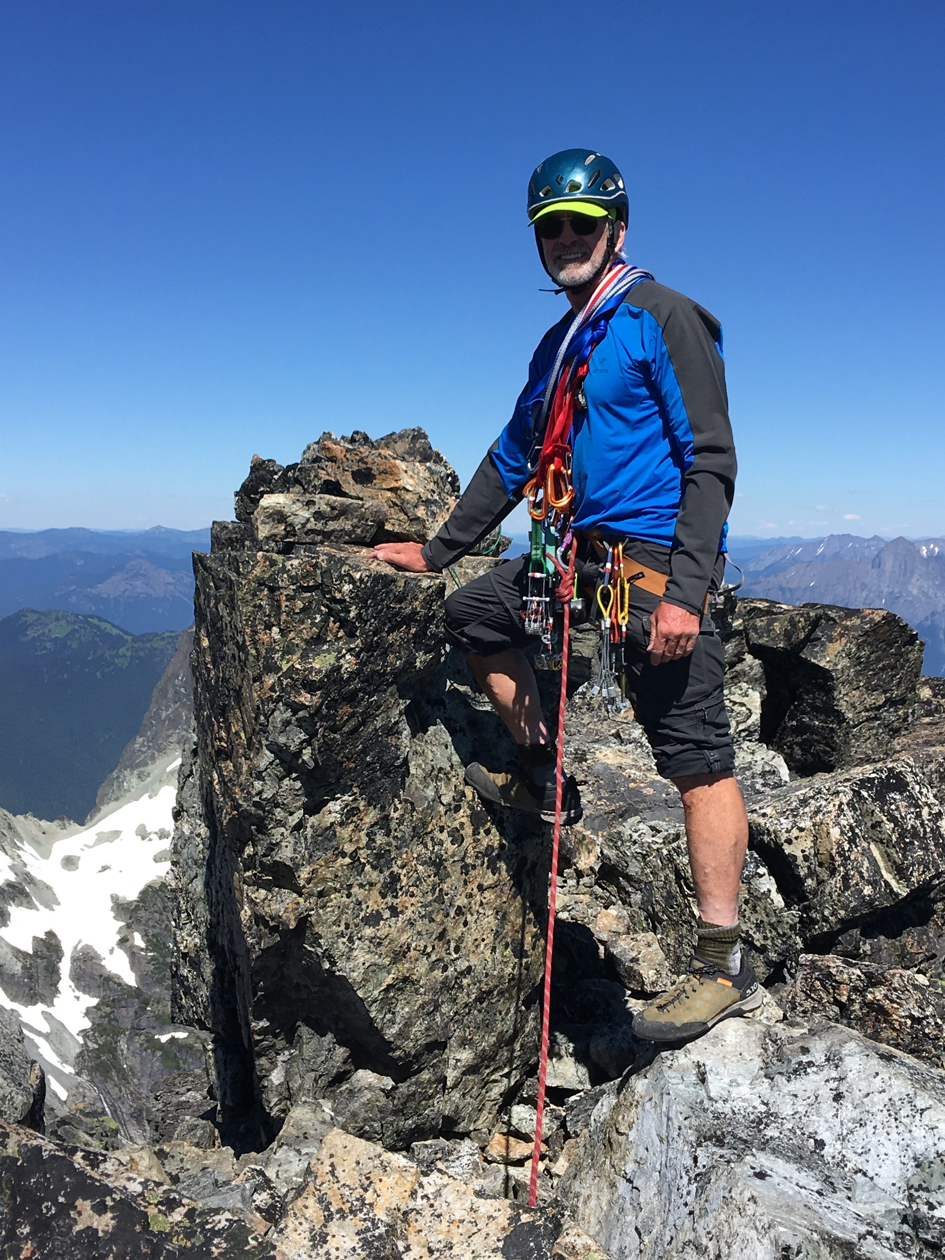 … then Jim lead up a class 5 pitch to regain the summit ridge…