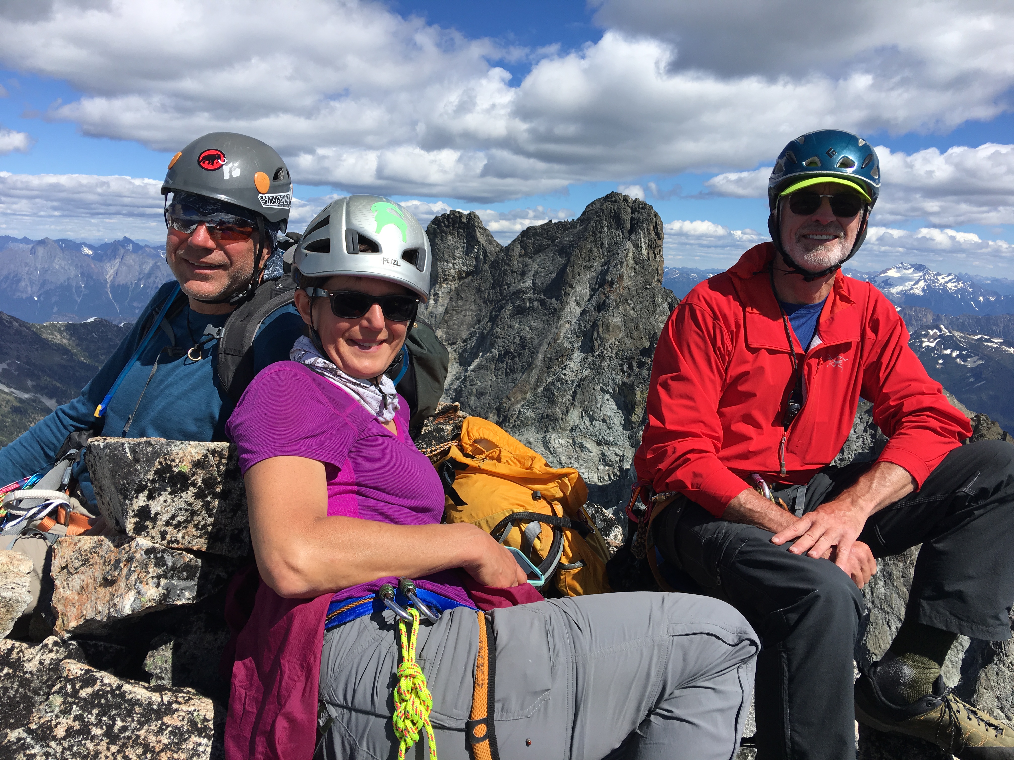 As we headed off the summit, we were grateful to have 3 ropes with us. It allowed us to setup 2 single rope rappels and a fixed line which got us off the summit, down to the ledge, then back up to the ridge crest without having to wait for a rope. It was very efficient.