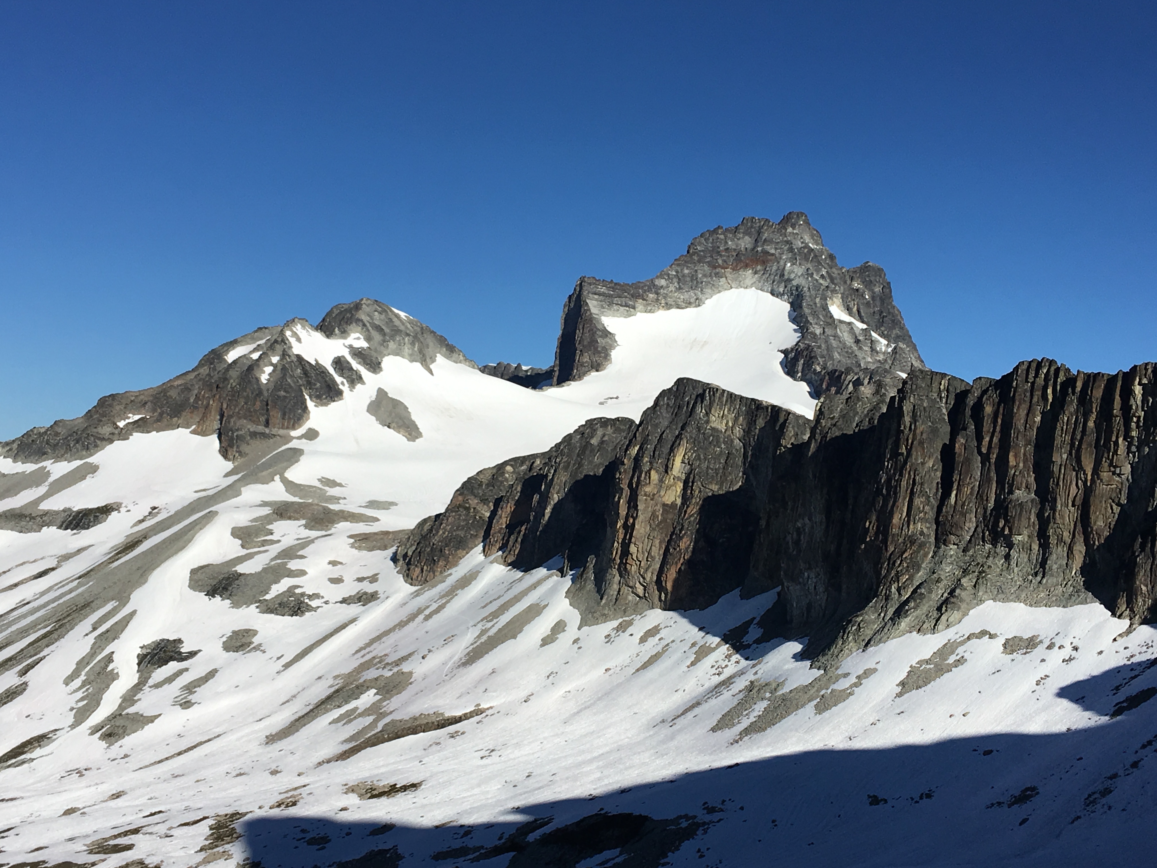 Hard Mox was typically climbed from the south side which meant scrambling out of Col of The WIld, going over the Ridge of Gendarmes, descending to the base of a gully which lead to a high notch on the west ridge of Hard Mox. From there, it would be 2 pitches of class 5 climbing and a scramble to the summit.