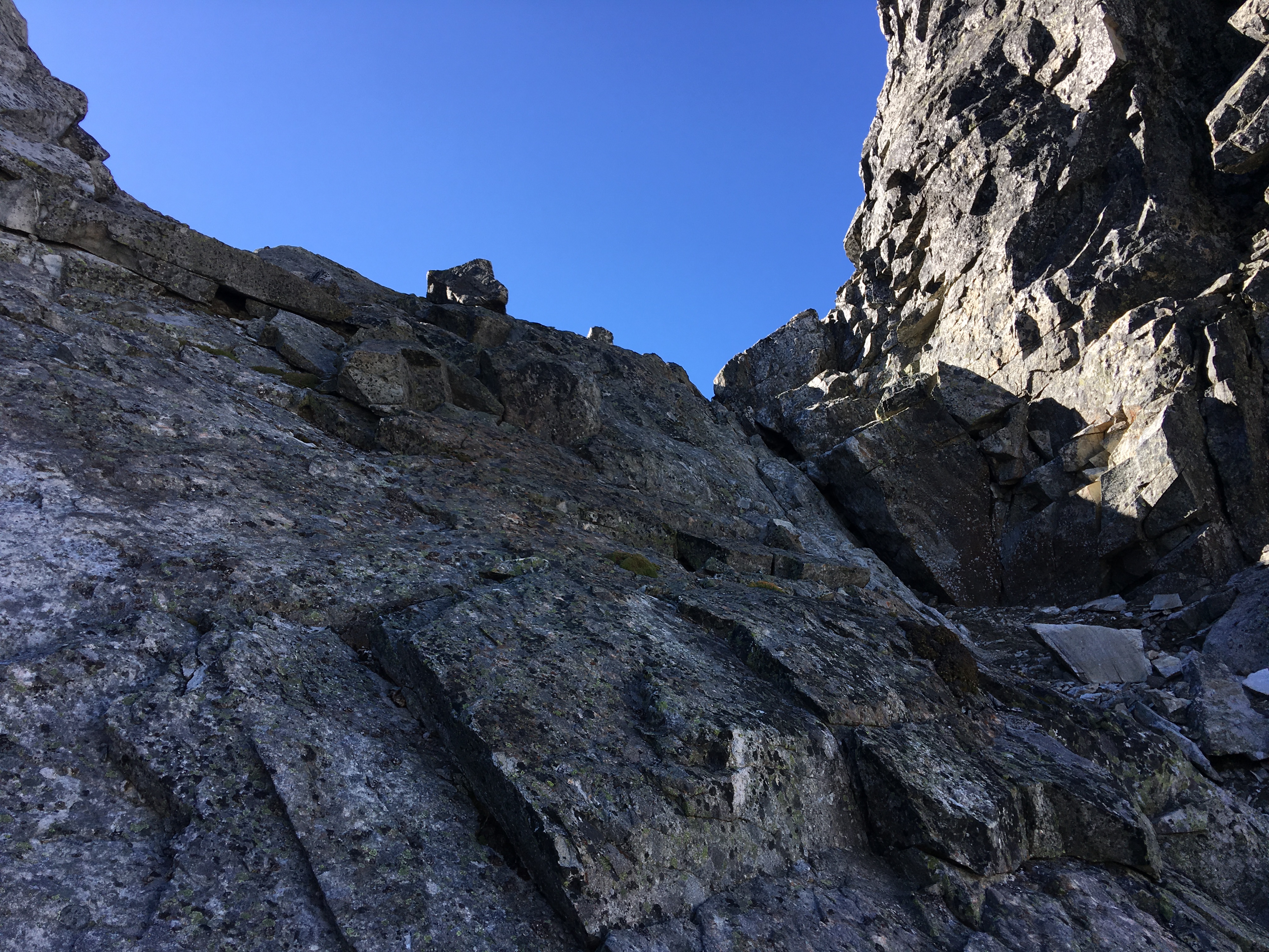 It was amazing to follow the series of short ledges that went right than left than right again and so on … The ledges created a ramp leading to a short rock slab at the base of the notch in the Ridge of Gendarmes.
