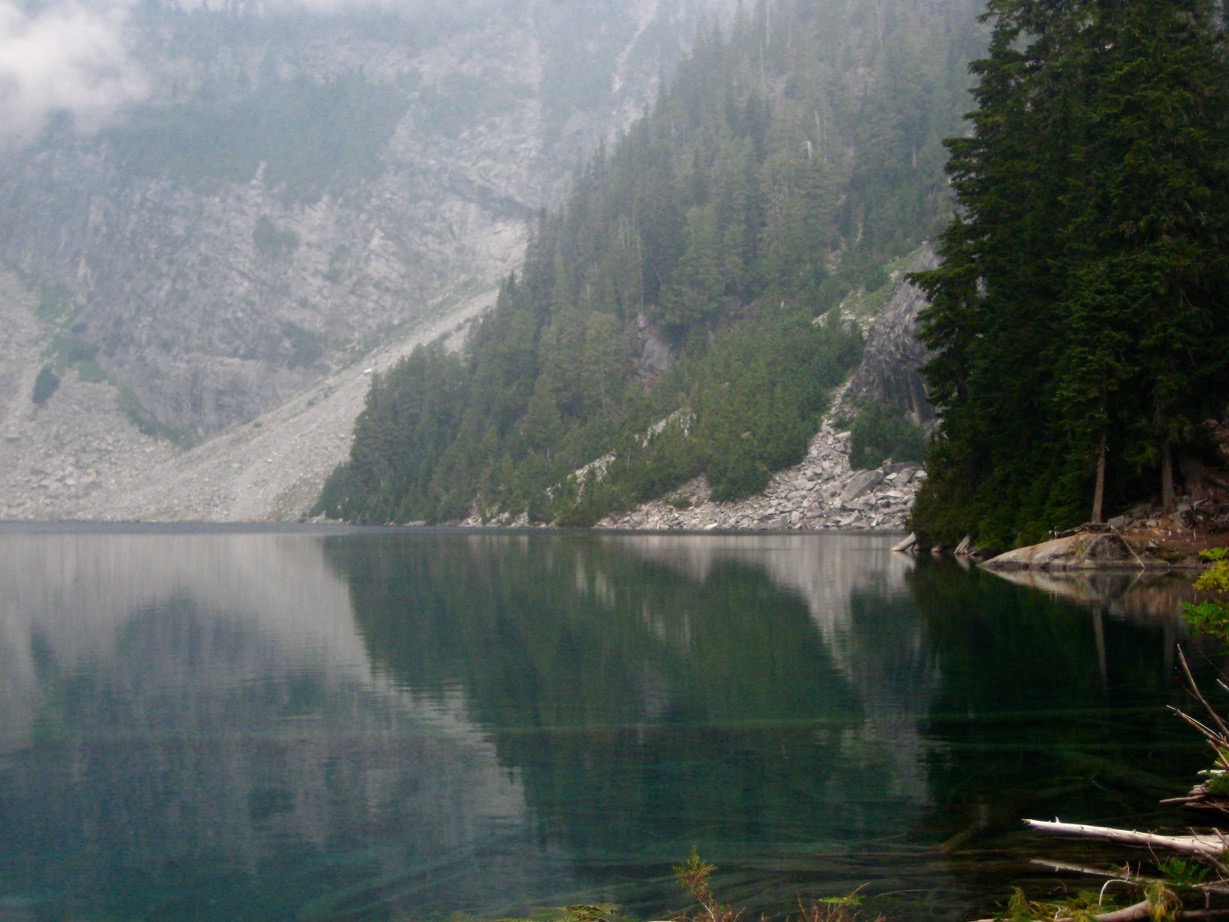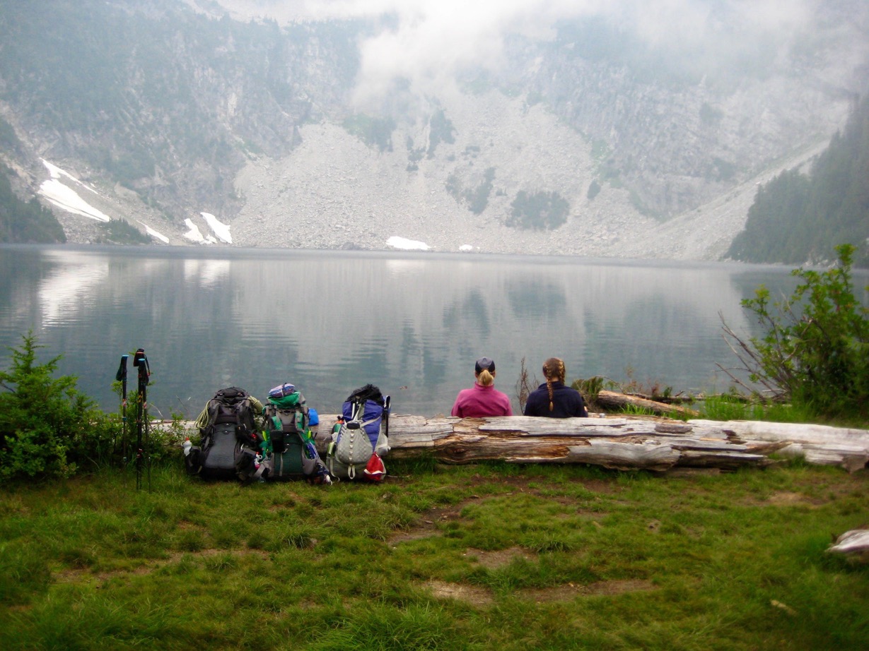 We went to Malachite Lake in the Alpine Lakes. Our plan was to climb Malachite Peak. After we reached the lake, we had lunch and watched the clouds drop onto the lake. By the time we got our tent up, it started to rain so we all dove inside and waited for it to stop.