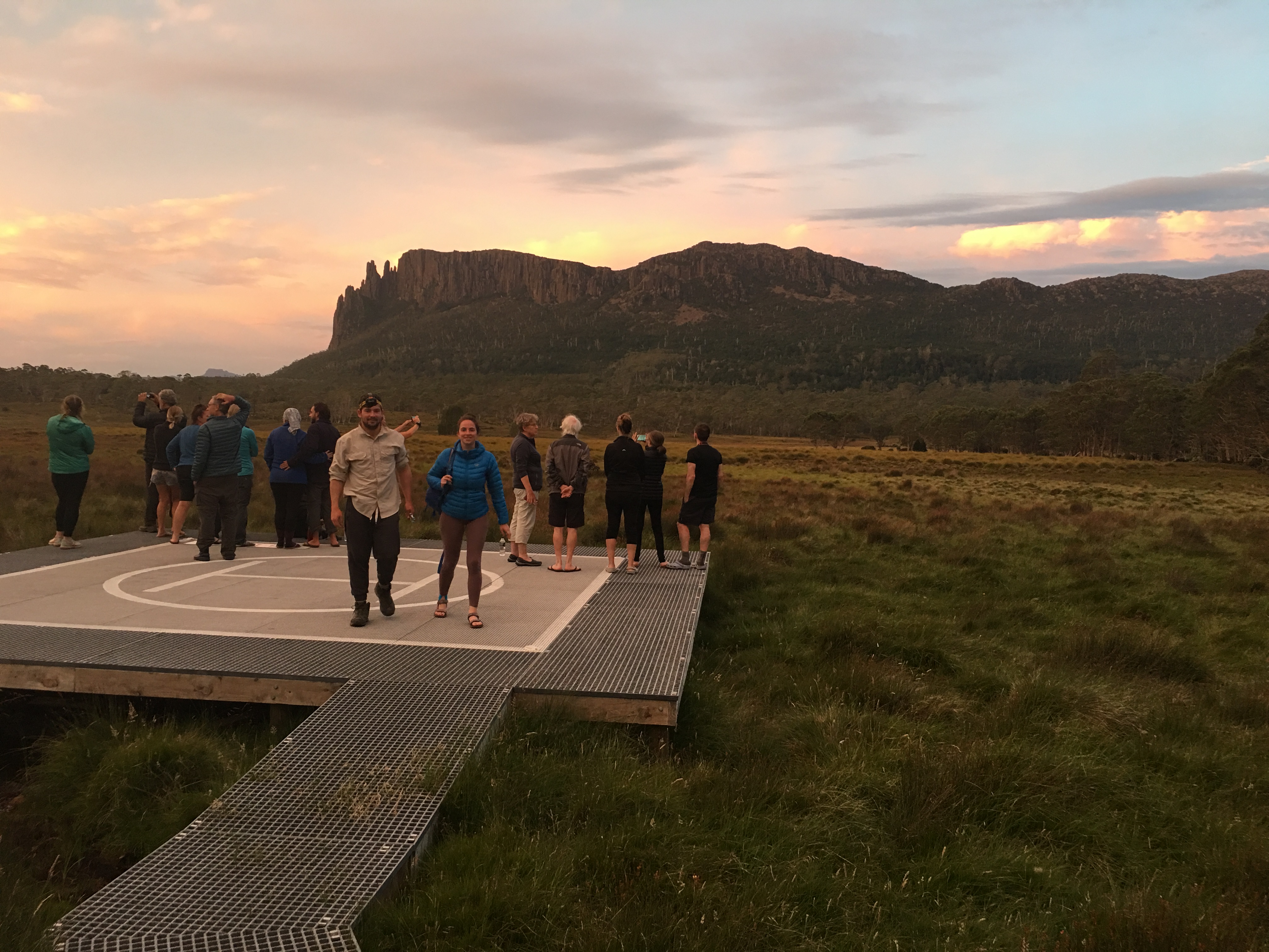By this point in the trek, our group of strangers was bonding. Tonight we all enjoyed the sunset from the helipad.