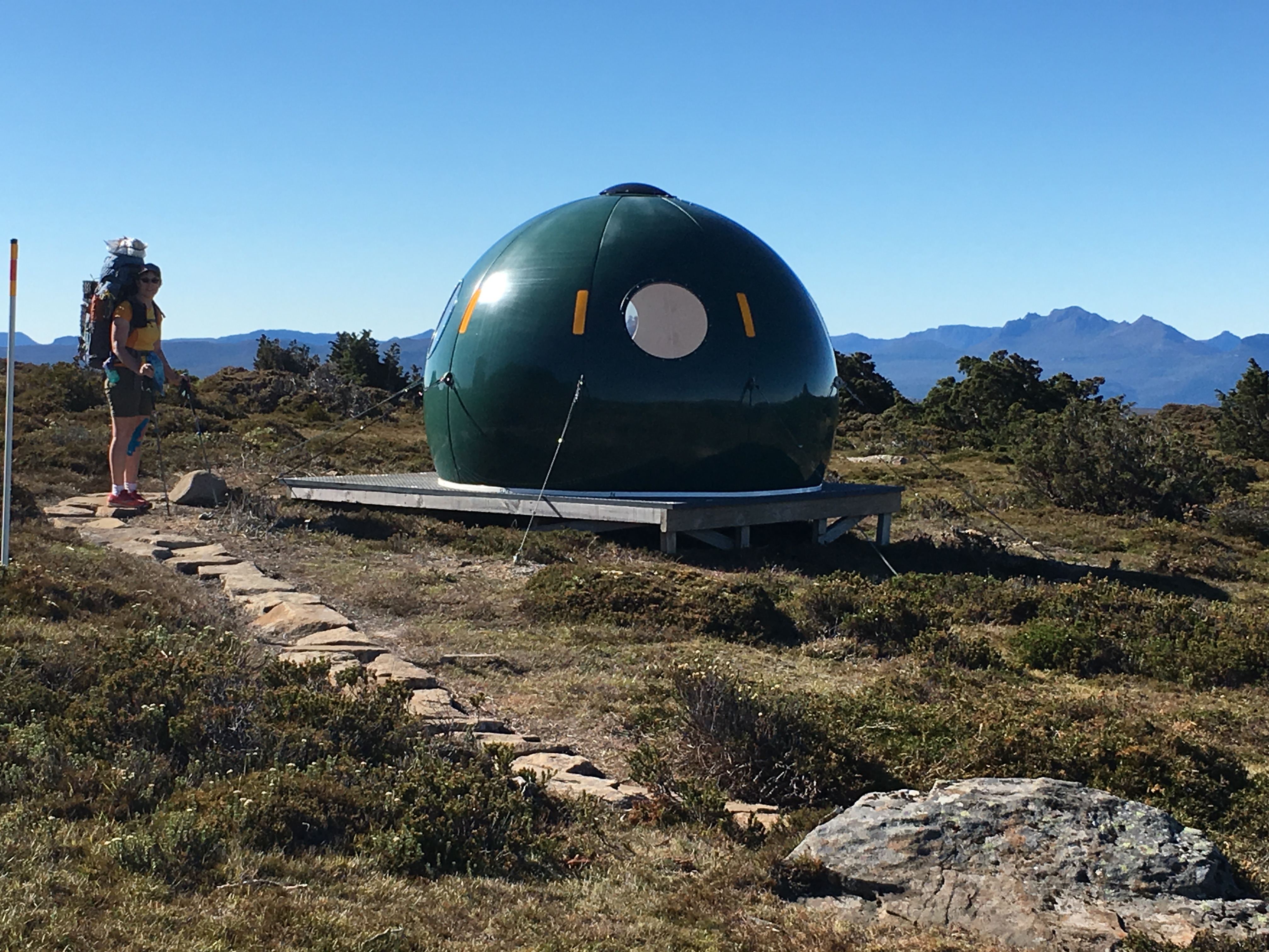 The hike across the high lands under Cradle Mountain was delightful. When we reached the ridge leading to Barns Bluff, we encountered this amazing emergency shelter. Based on the plaque, we guessed it was designed for the Antarctica by the Australian Government.