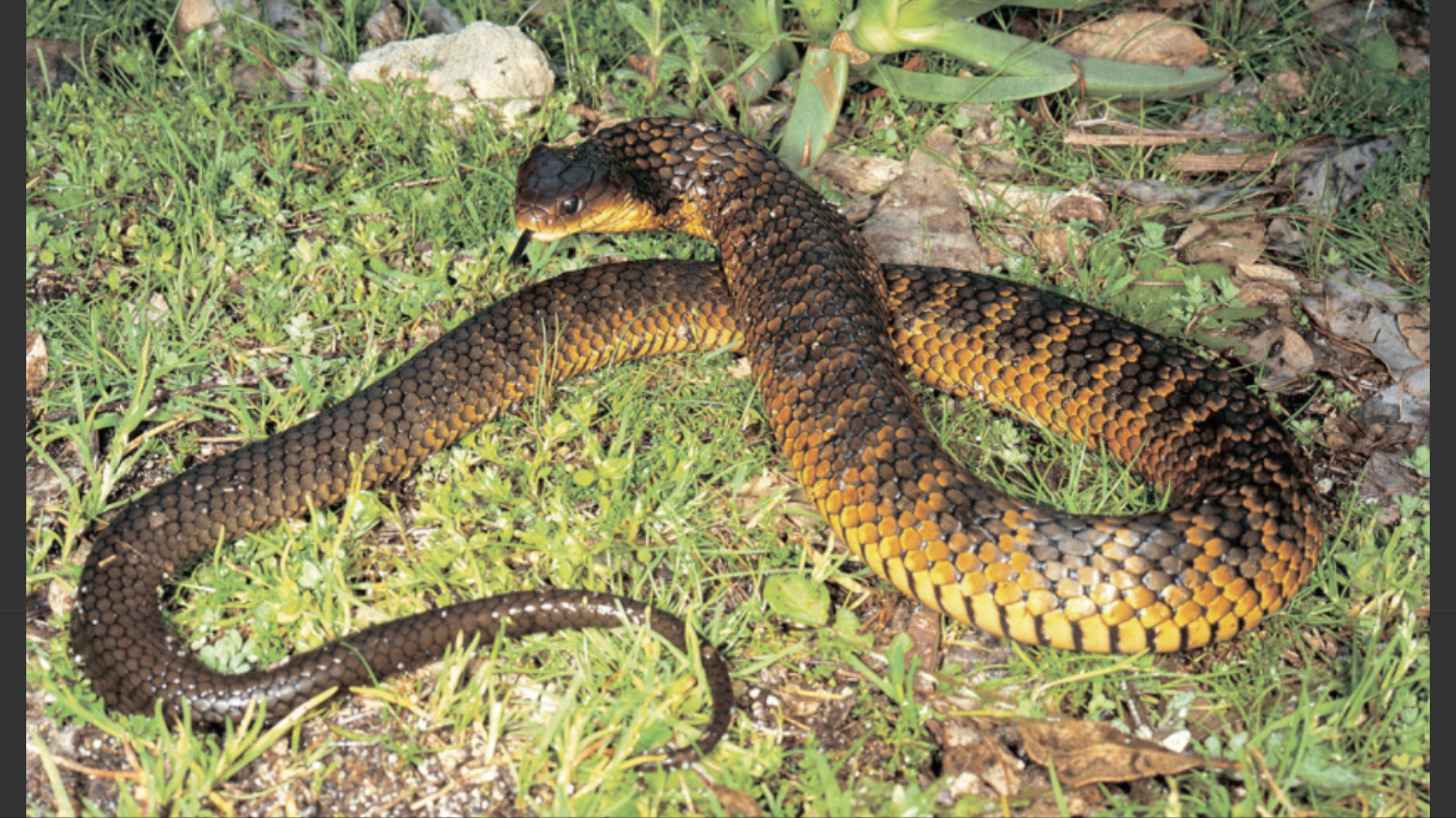 When we returned to civilization and WiFi, we identified the snake as a Tiger Snake. The most deadly in Australia. Here is a picture I got off the internet. I was to petrified at the time to take my own photo.