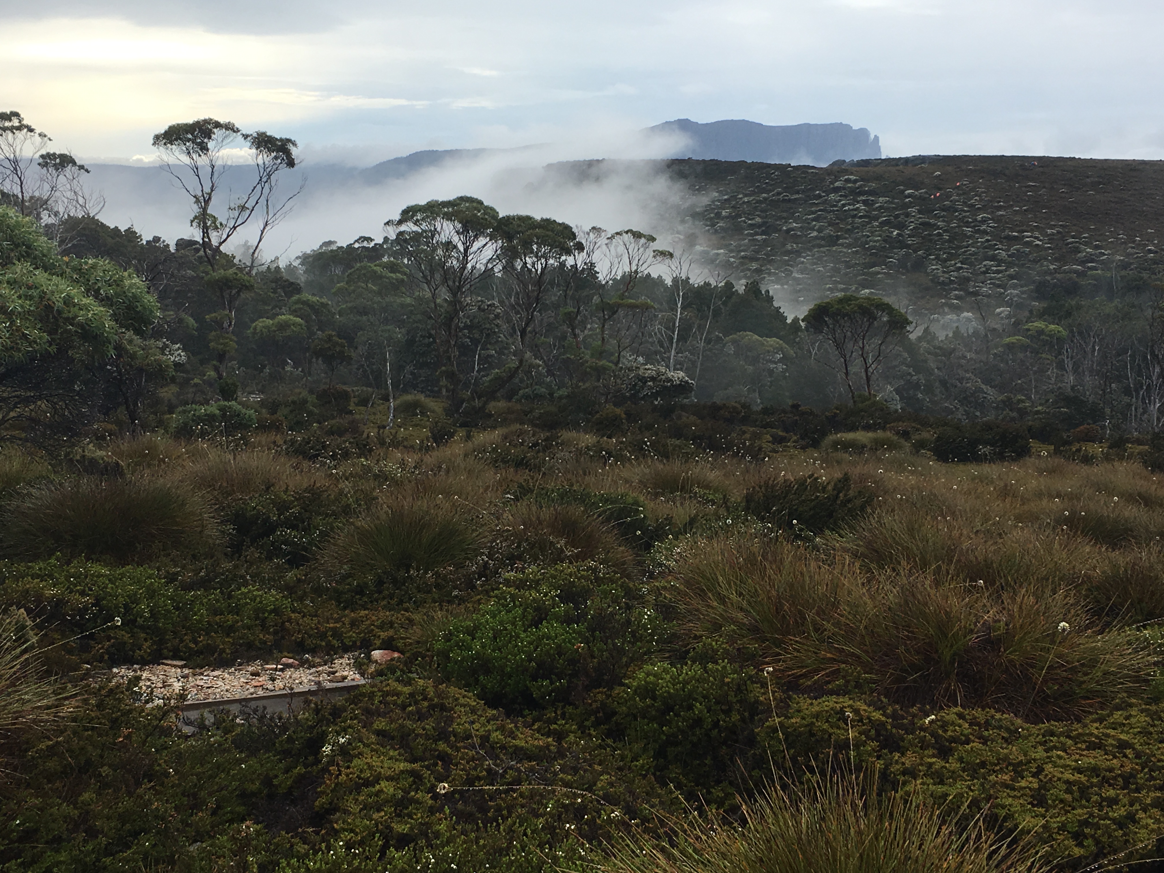 As we hiked over the high plain, the Tasmania weather changed again and started to rain which continued until 8am the next day.