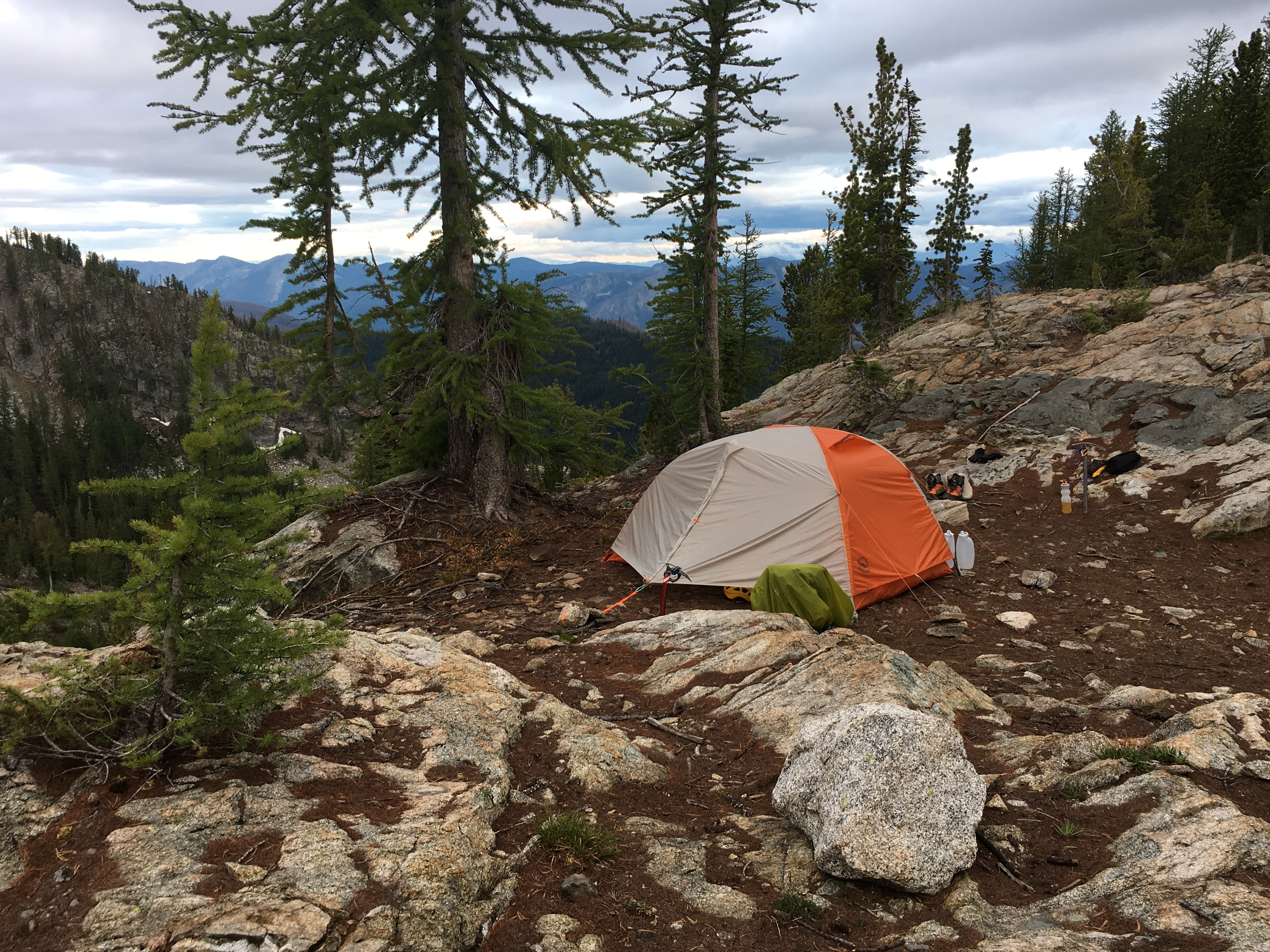 From the summit of Sqauretop, we could hear our group visiting in camp. We quickly scrambled back down in the basin to join everyone for dinner. Jim and I pitched our tent on a high rock knoll with endless views.