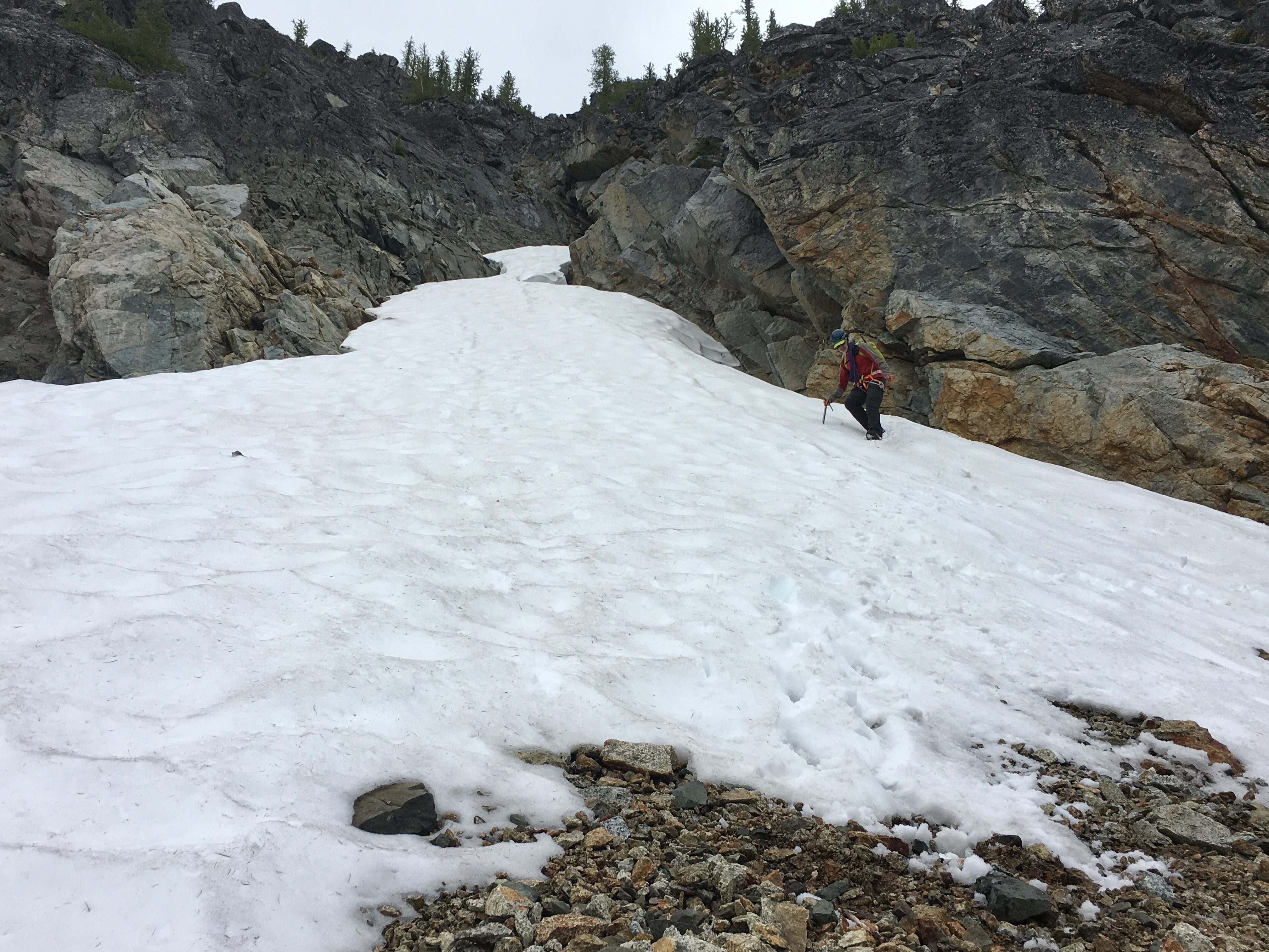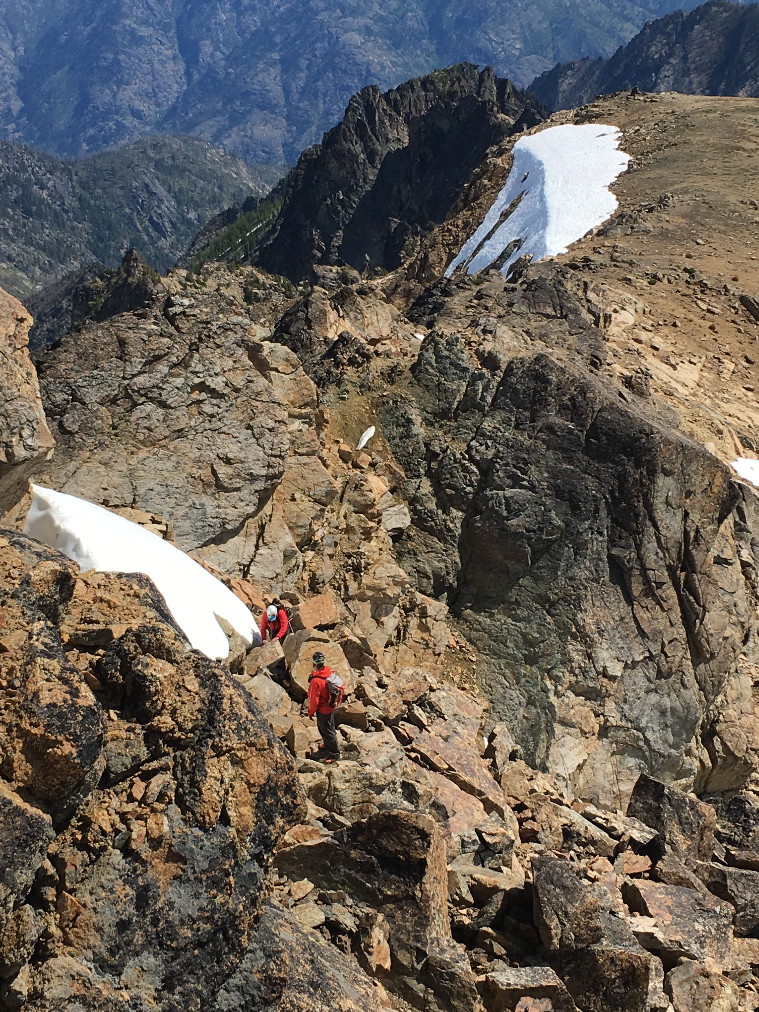 I watched the guys until they were out of sight and then I headed towards a potential snow couloir at the low spot in the ridge. I was back up on the ridge within the hour. If only we had come this way at the beginning of the day.