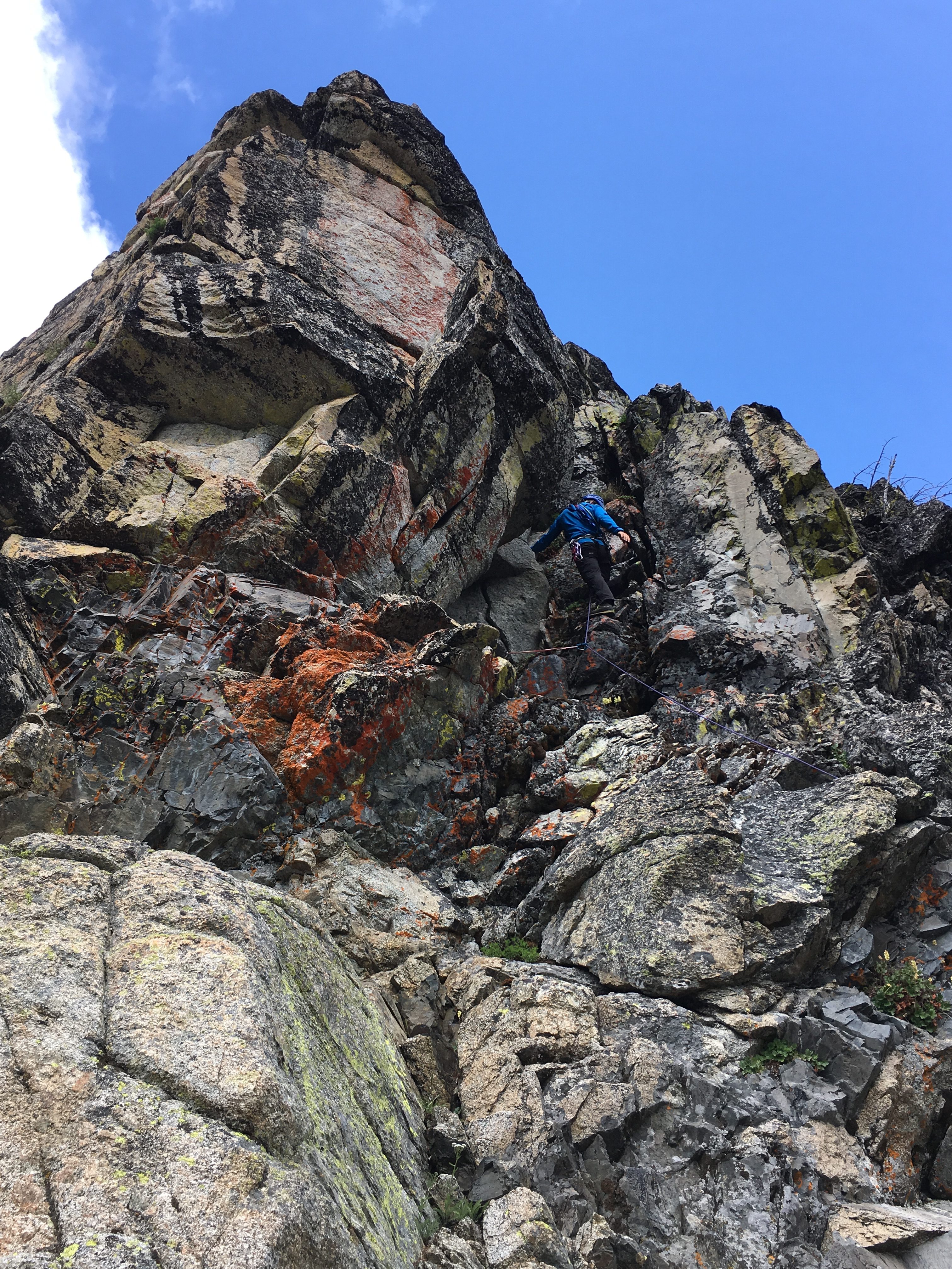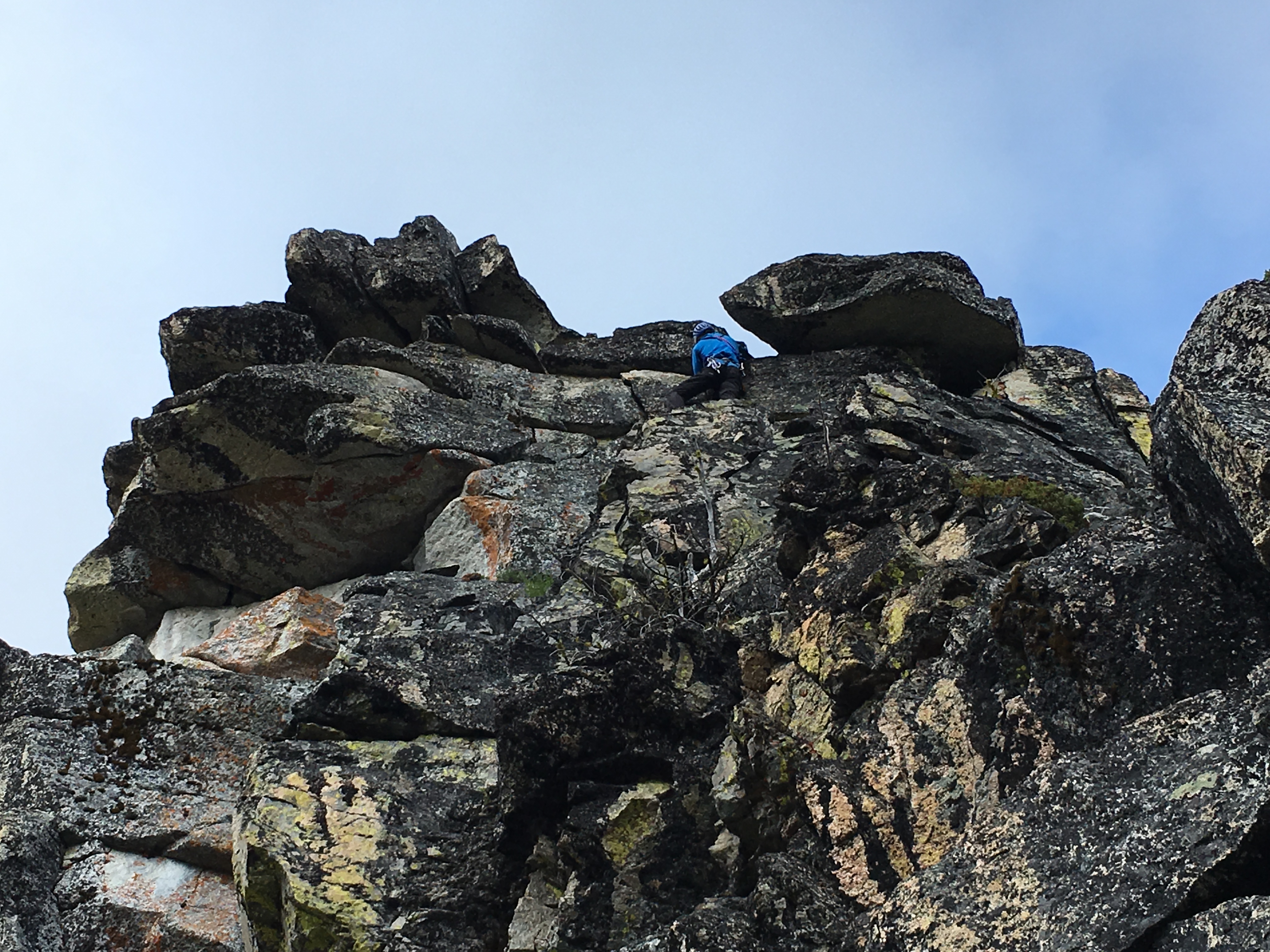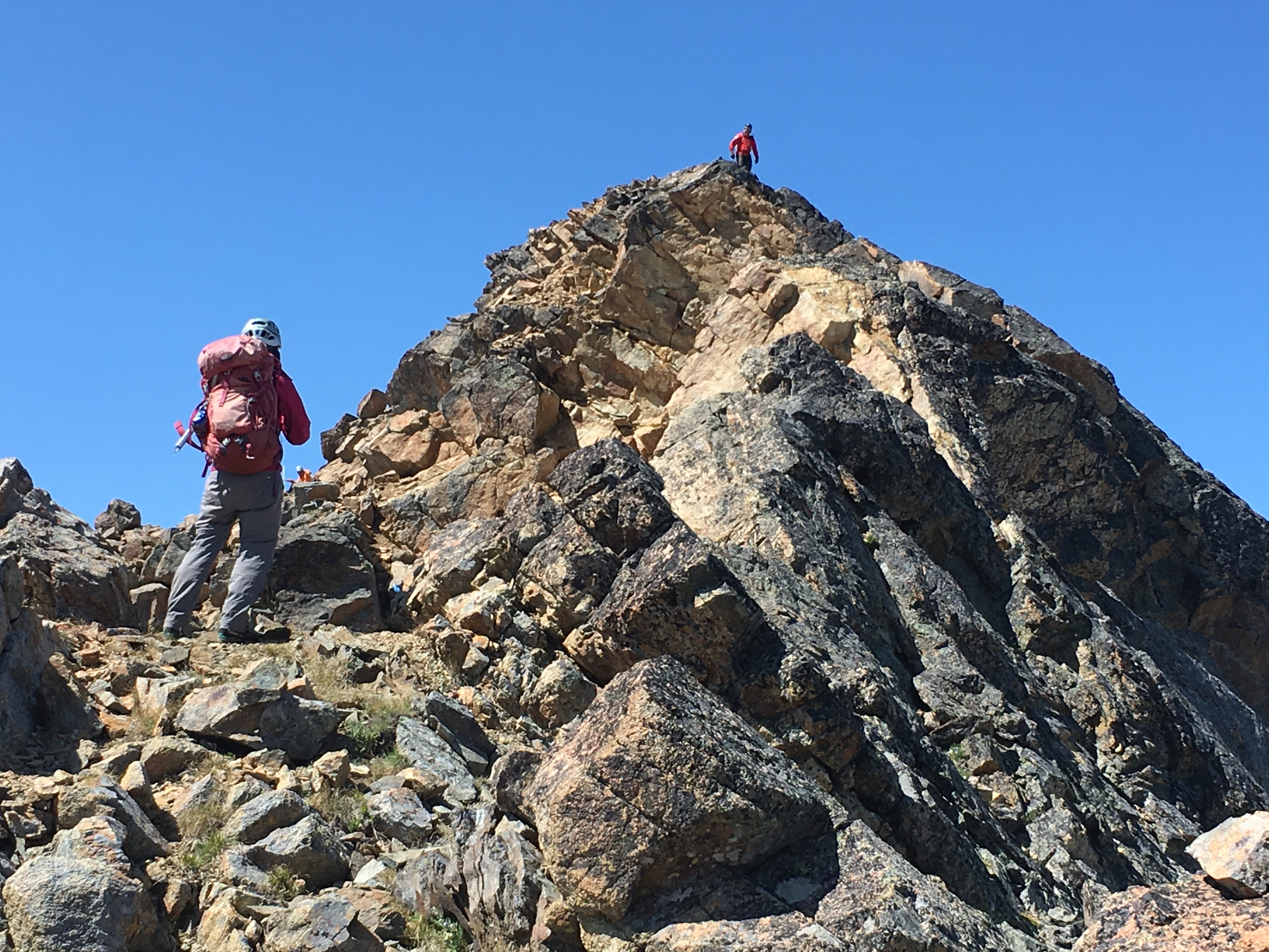 On Day 4, we packed up camp and headed up to Grouse Pass. At the pass, we dropped packs, pulled out our climbing gear, and headed up to the pinnacle for some morning fun.