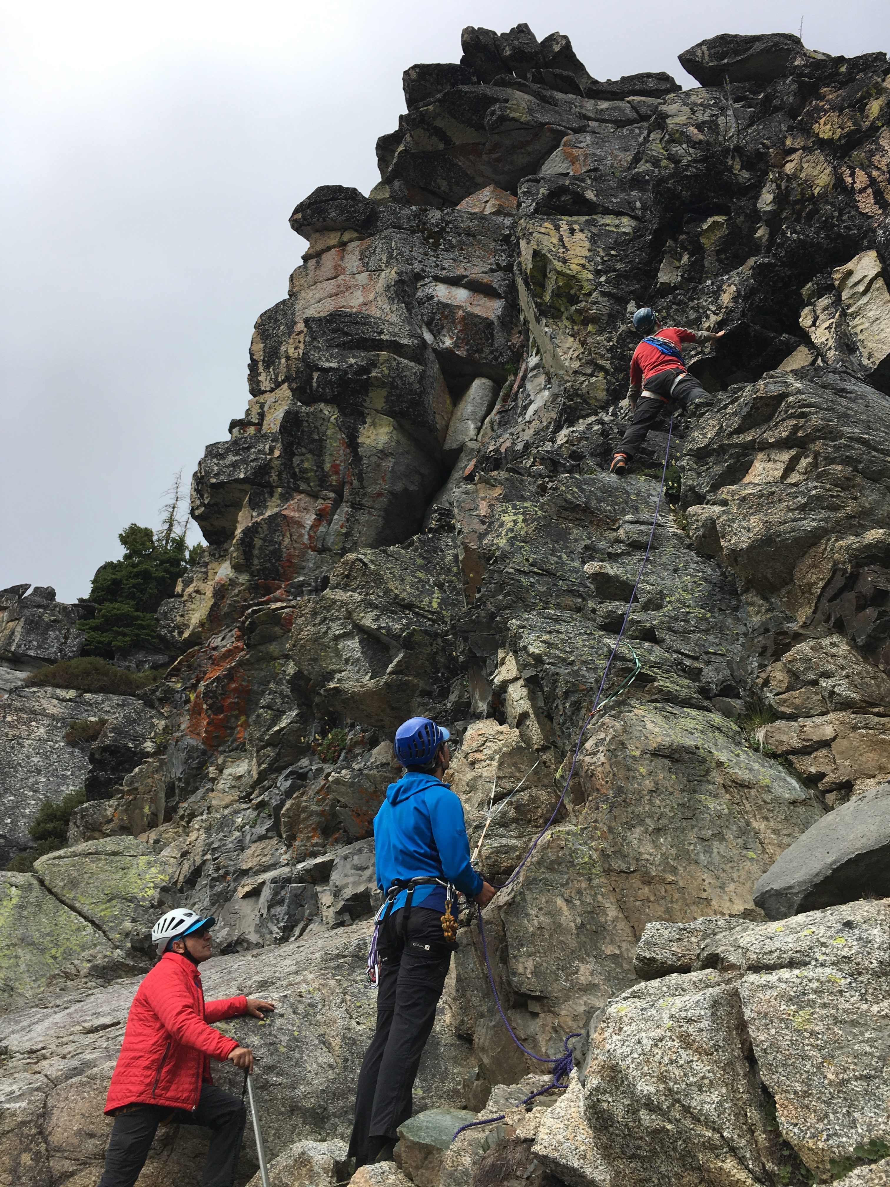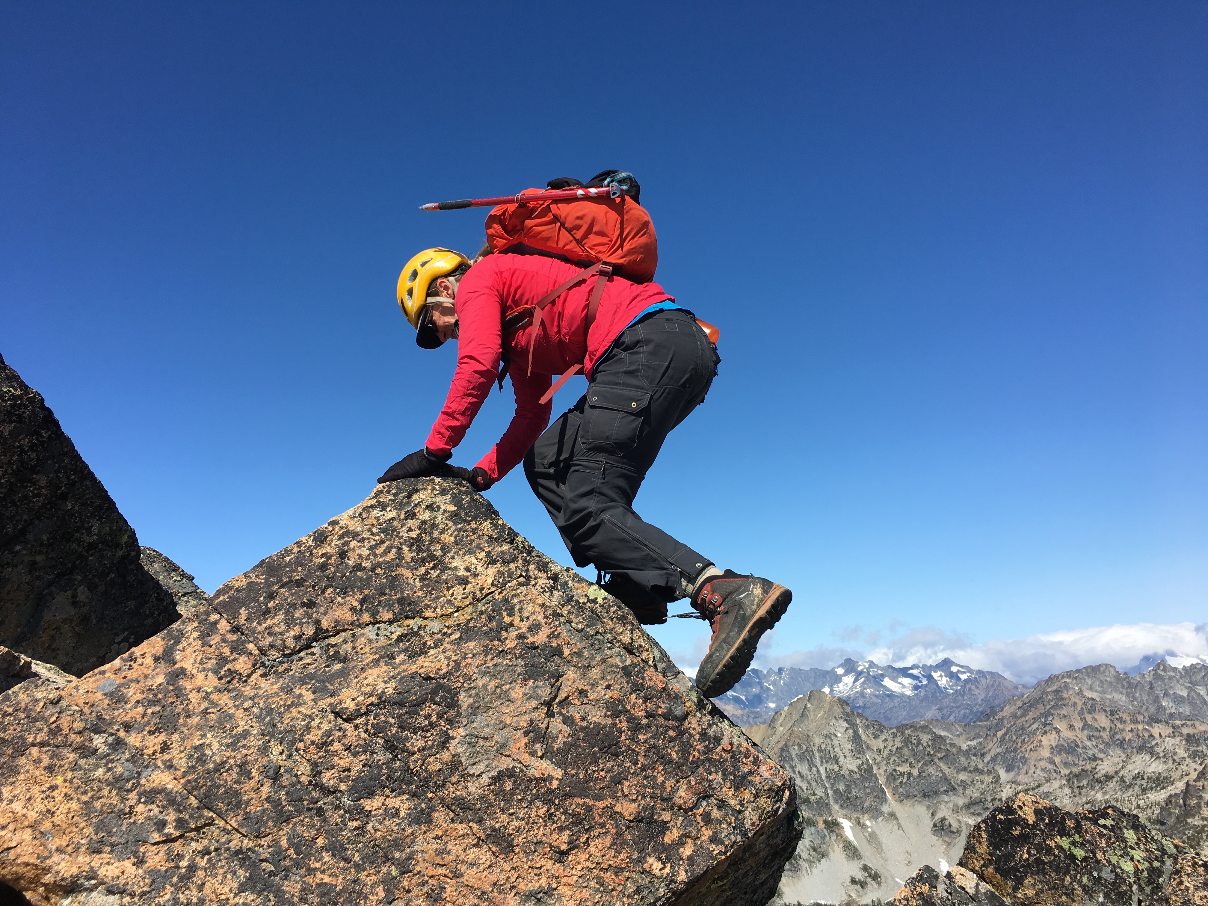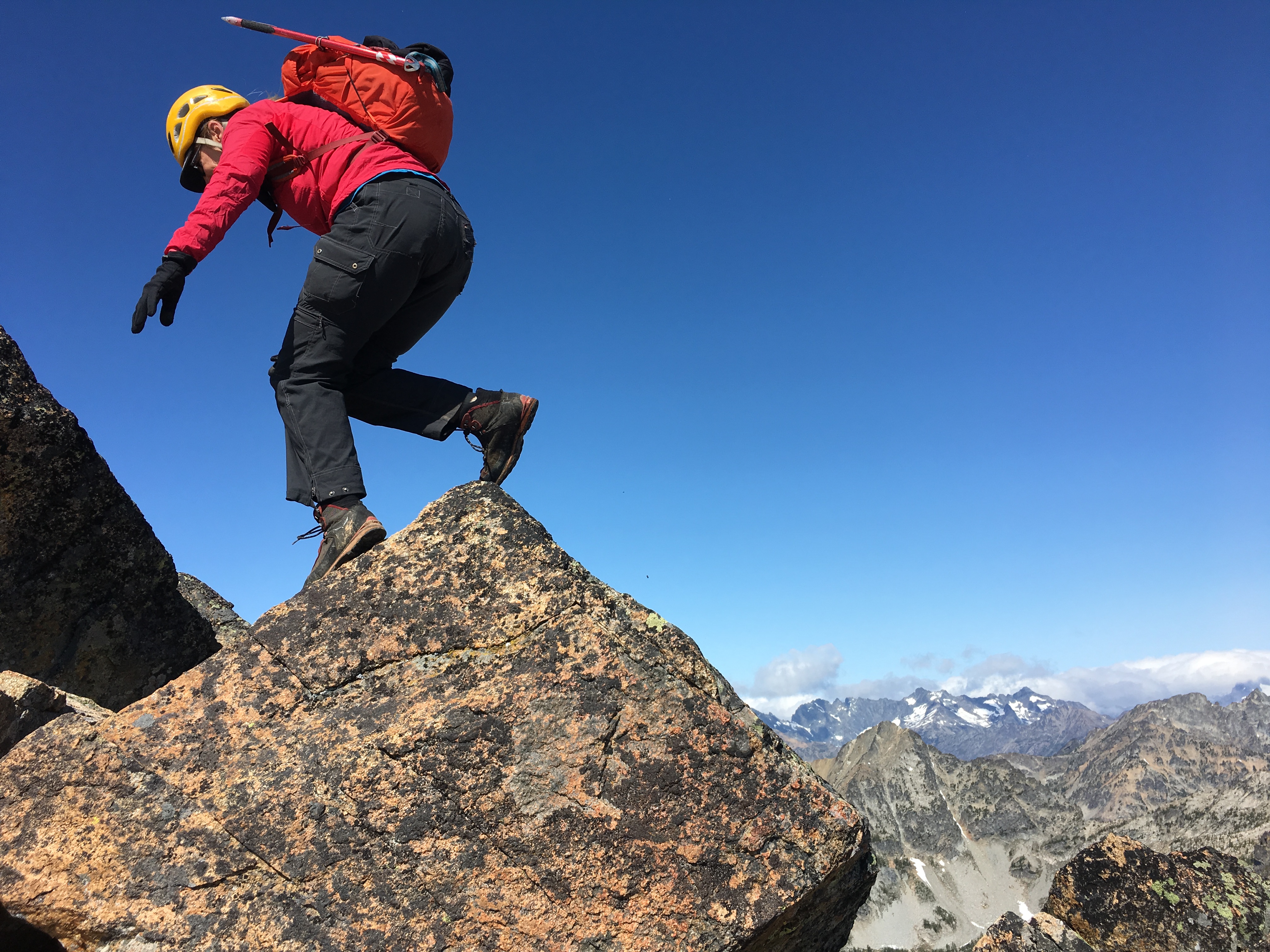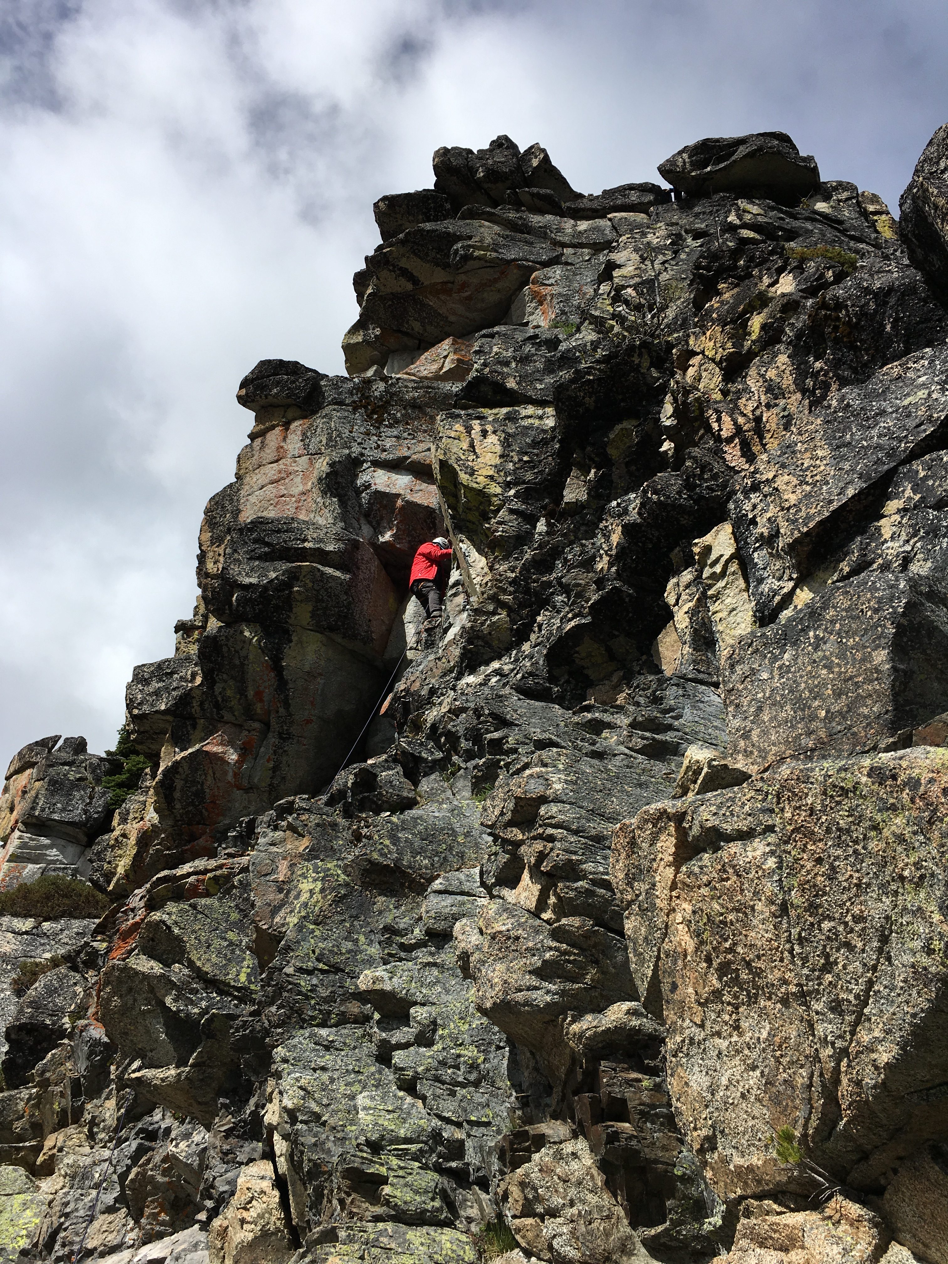 On Day 4, we packed up camp and headed up to Grouse Pass. At the pass, we dropped packs, pulled out our climbing gear, and headed up to the pinnacle for some morning fun.