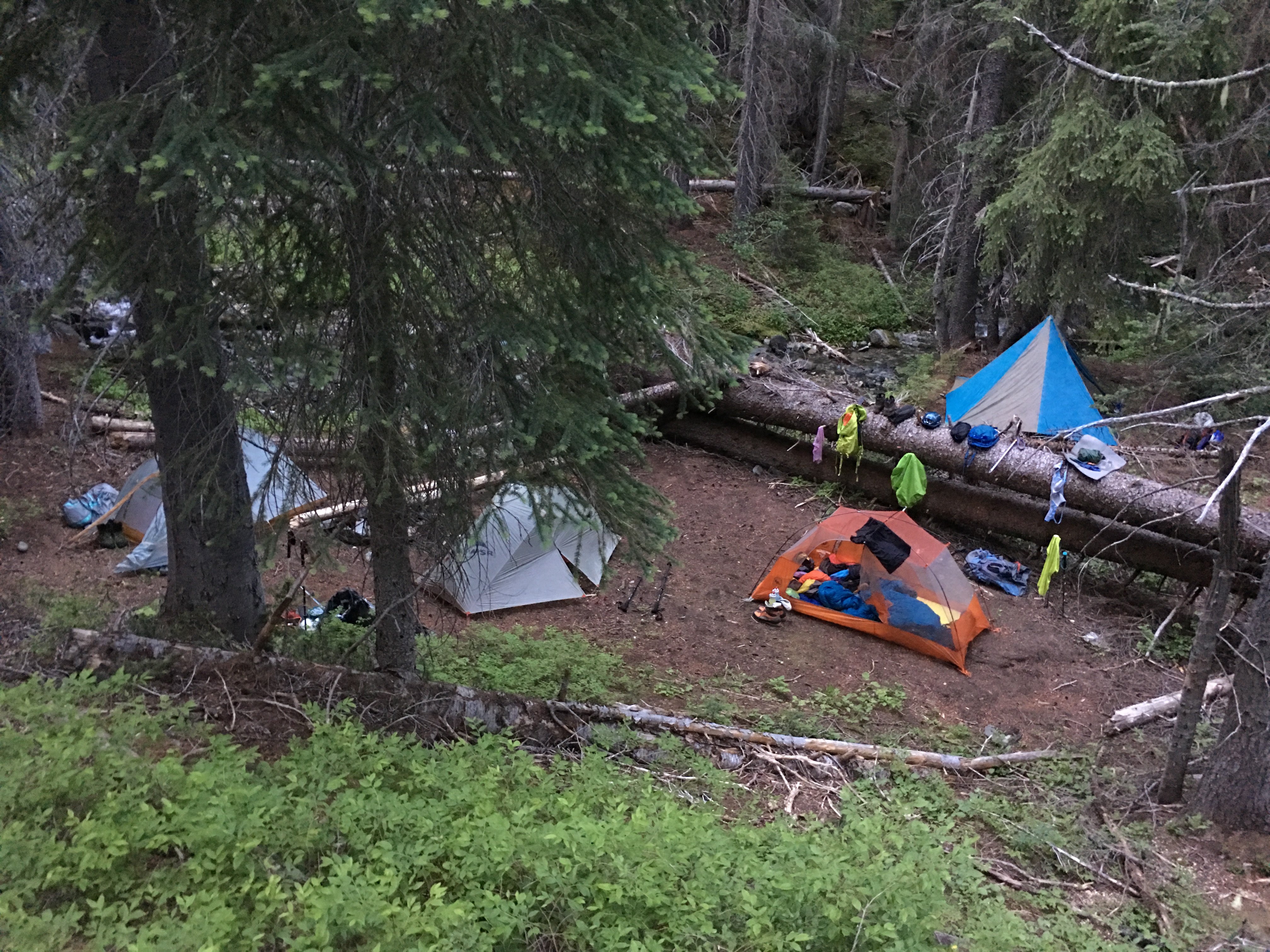 The plan was to only hike a few hours up the trail. So when we stubbled onto a beautiful forest camp on a creek, we all quickly took to setting up our tents.