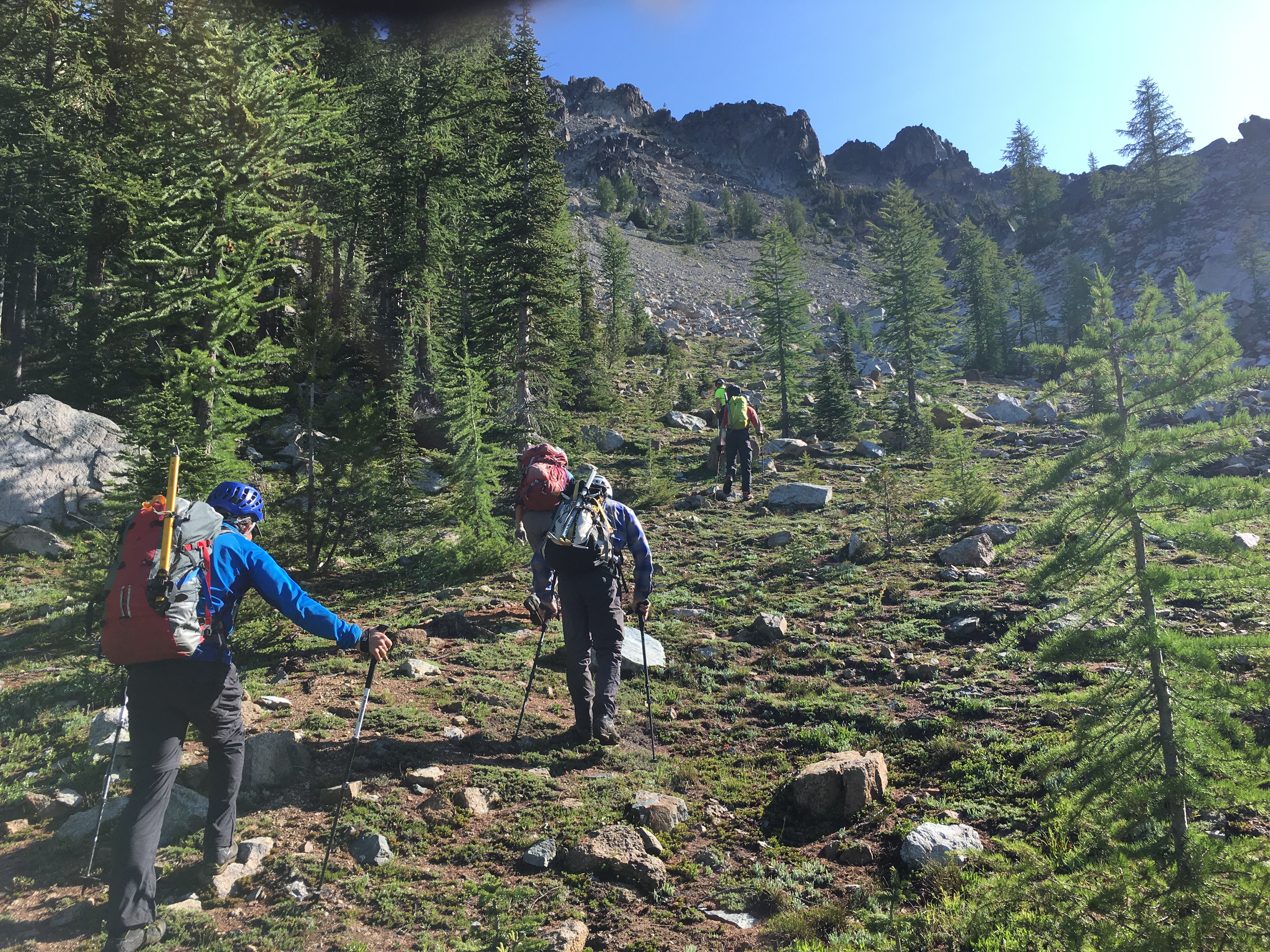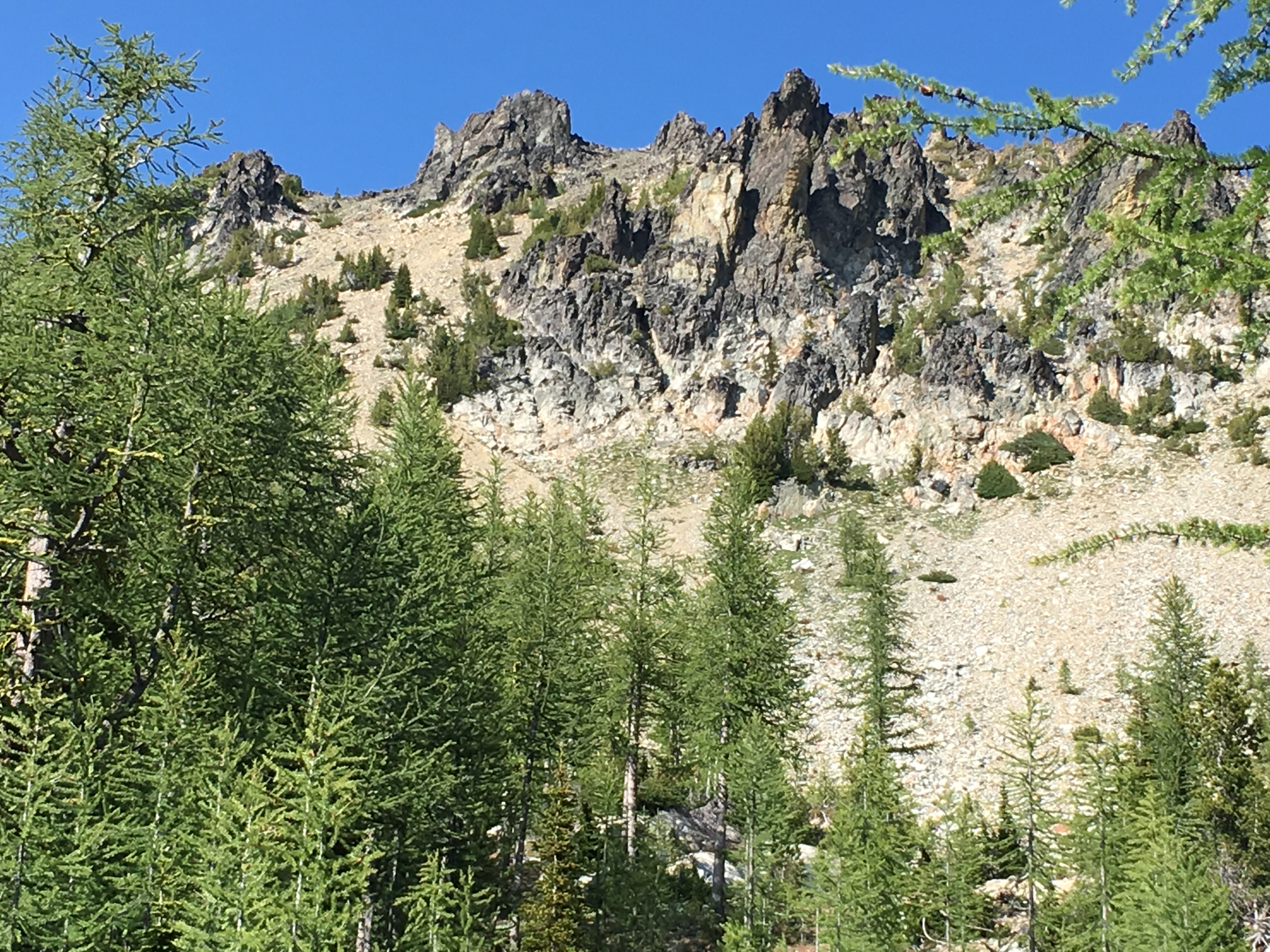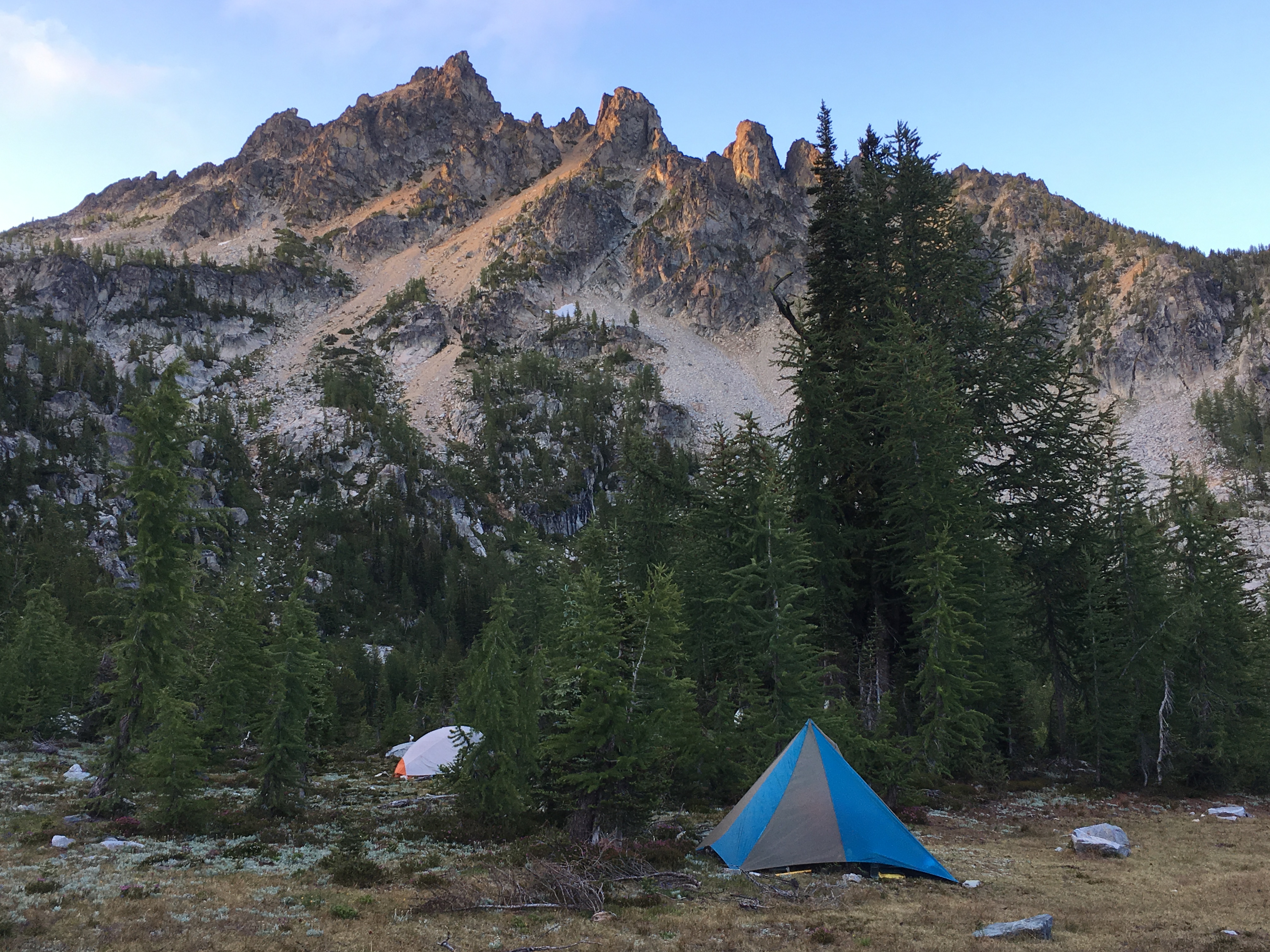 We woke to blue skies but it felt like October. We all froze until the sun hit our tents. The wind was still whistling through the trees but we were all ready to climb Cardinal Peak. We had been looking at it from camp for the last few days.