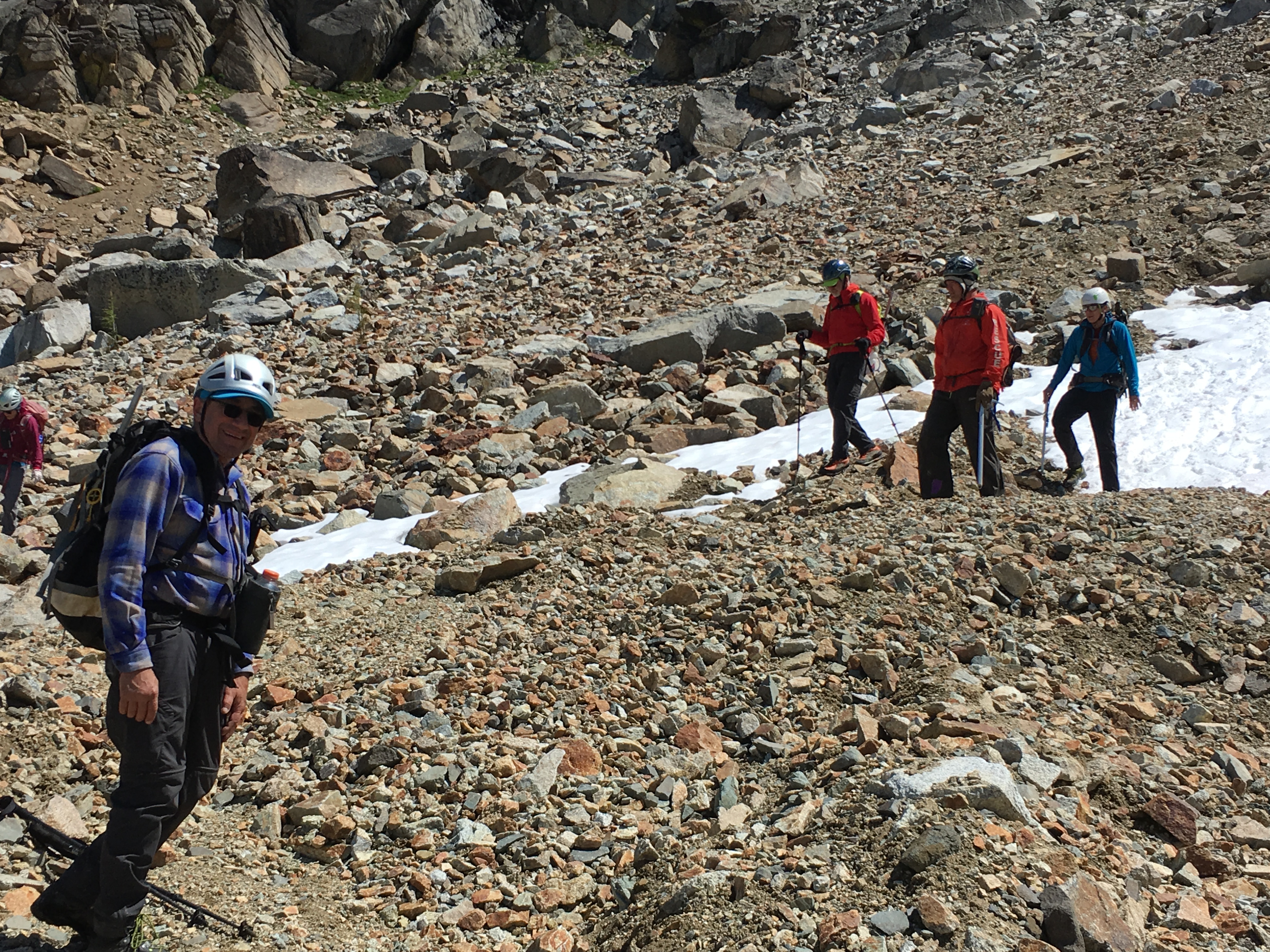 David, Lisa, Kevin, Jim, and I decided to climb Emerald Peak directly from Saska Basin. Emerald was equally fun with a very short class 3 scramble near the top.