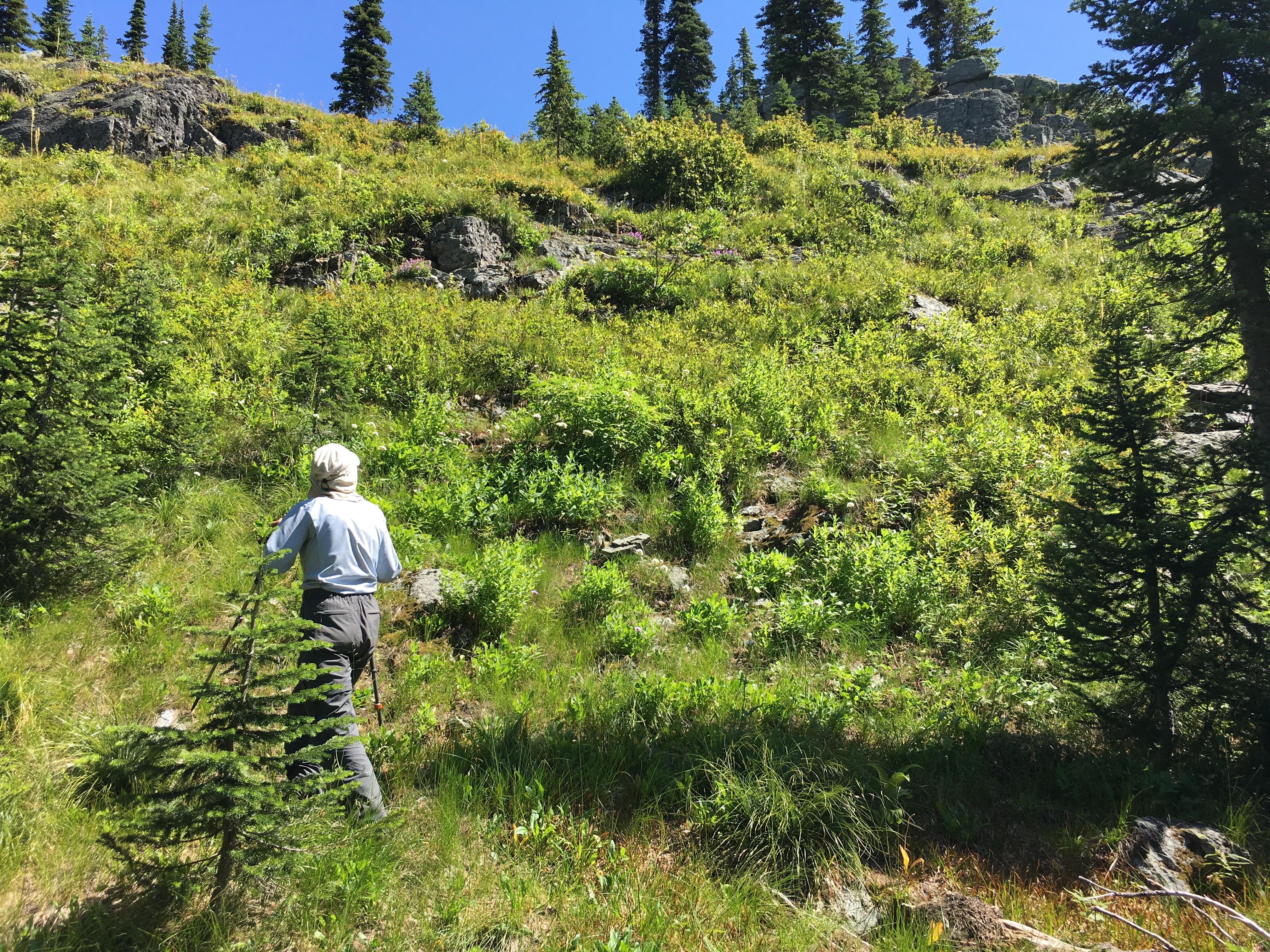 The next morning Fay and I got an early start for this trip, 10am. We headed up Snowy Top Mountain which was beautiful meadows once you got through the steep cliff band.