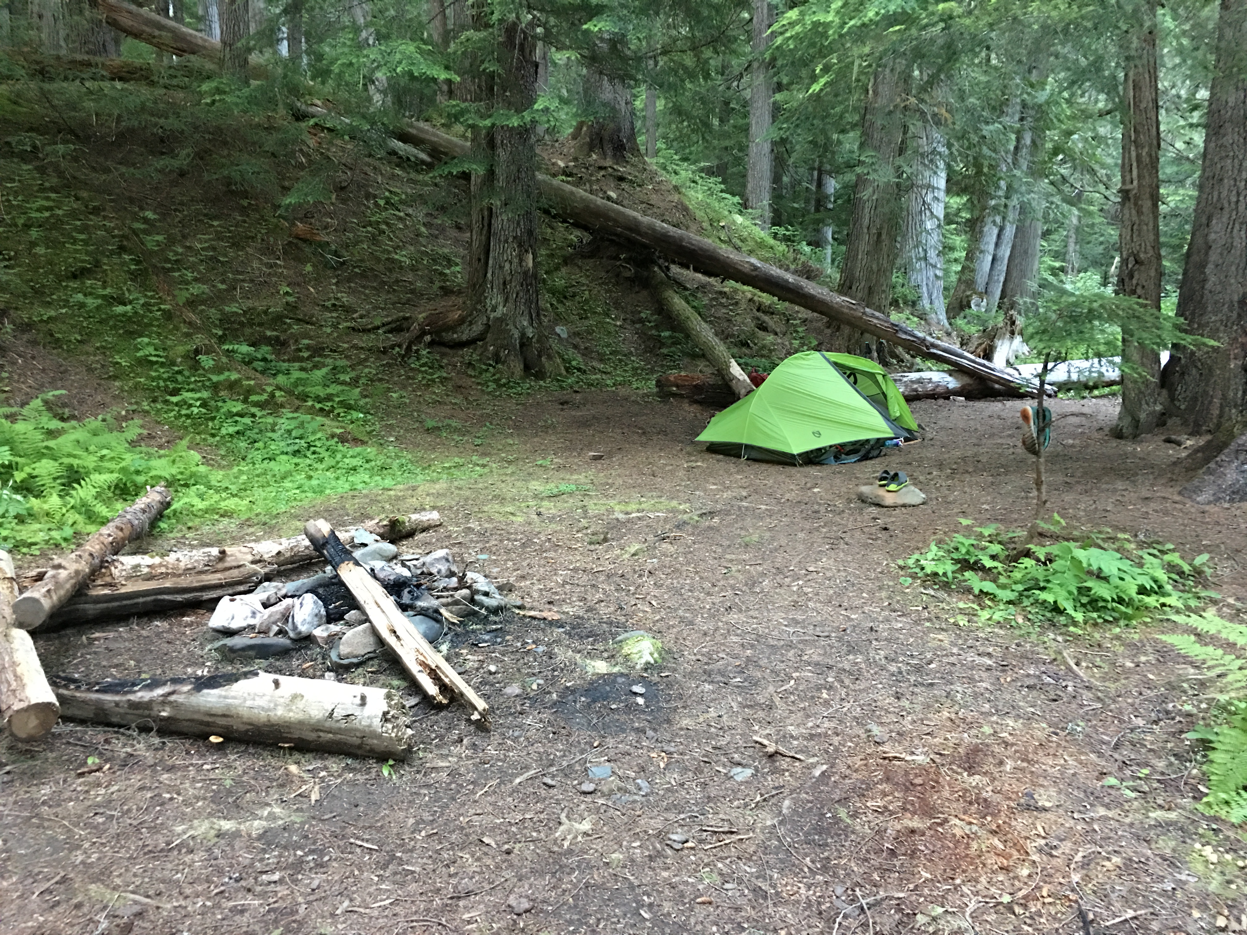 Since the hiking loop was only 19 miles and we had 5 days, we felt no sense of urgency. We hiked along the forest floor visiting and admiring the old growth forest and crystal clear creek. Next came the Washington / Idaho border marked by a wilderness sign. We found out later that even though the entire area was wilderness, it is named 2 different things and managed by 2 different states.