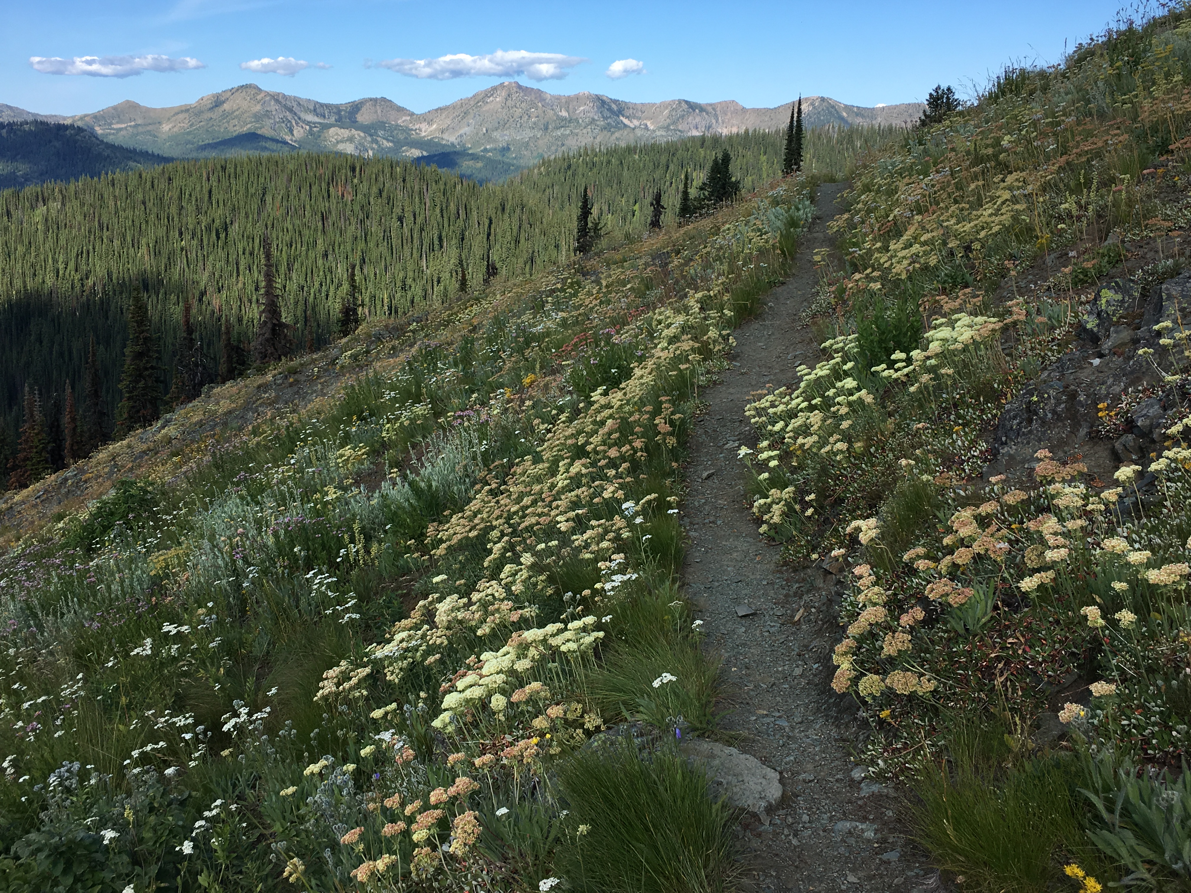 We had some time after setting up camp to hike up to Shedroof Mountain Lookout. There were beautiful flowers covering the trail.