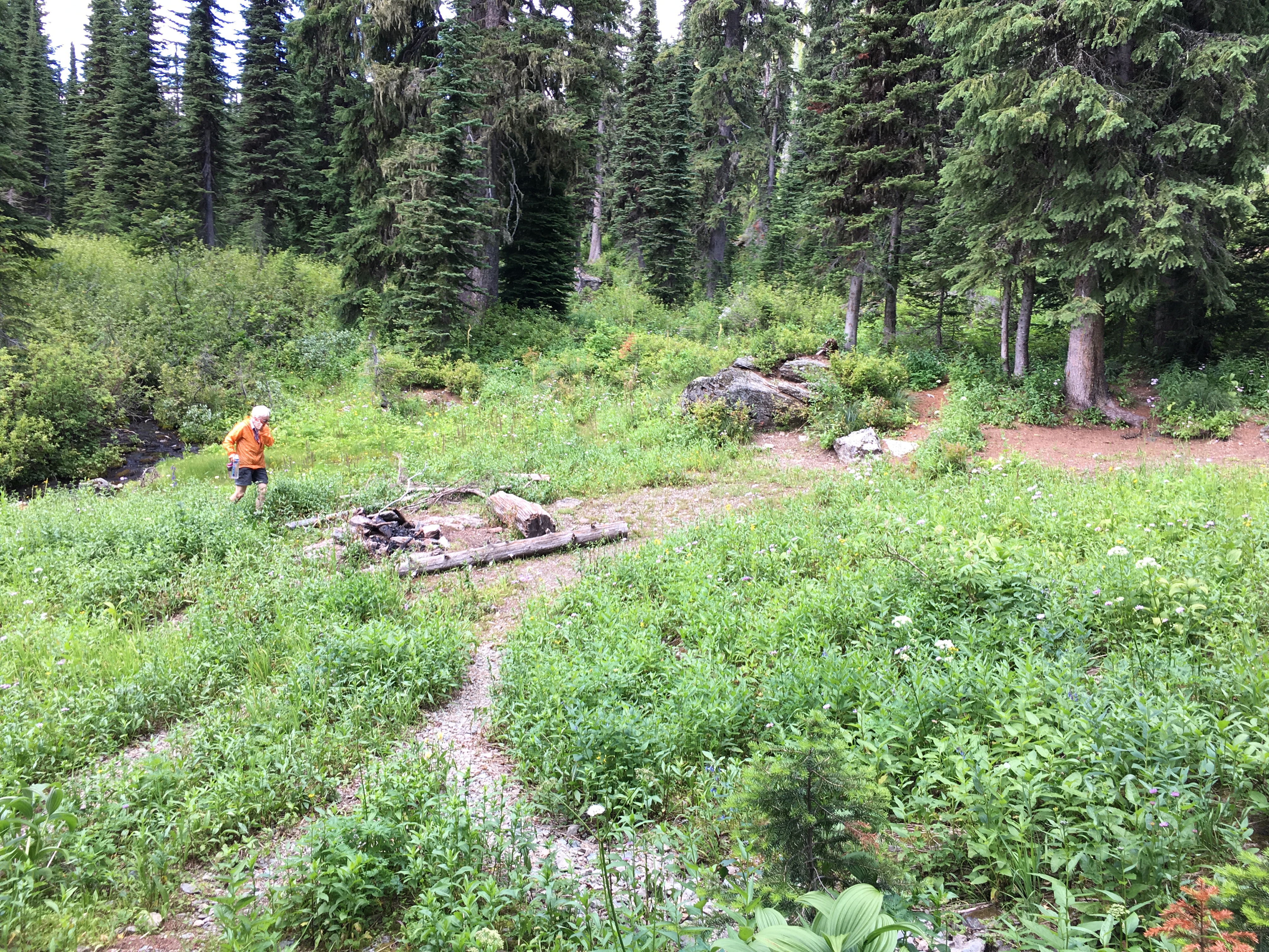 At Shedroof Pass, we found a beautiful camp spot but no water. Luckily, we filled up with water at the creek just a 1/2 mile from the pass.