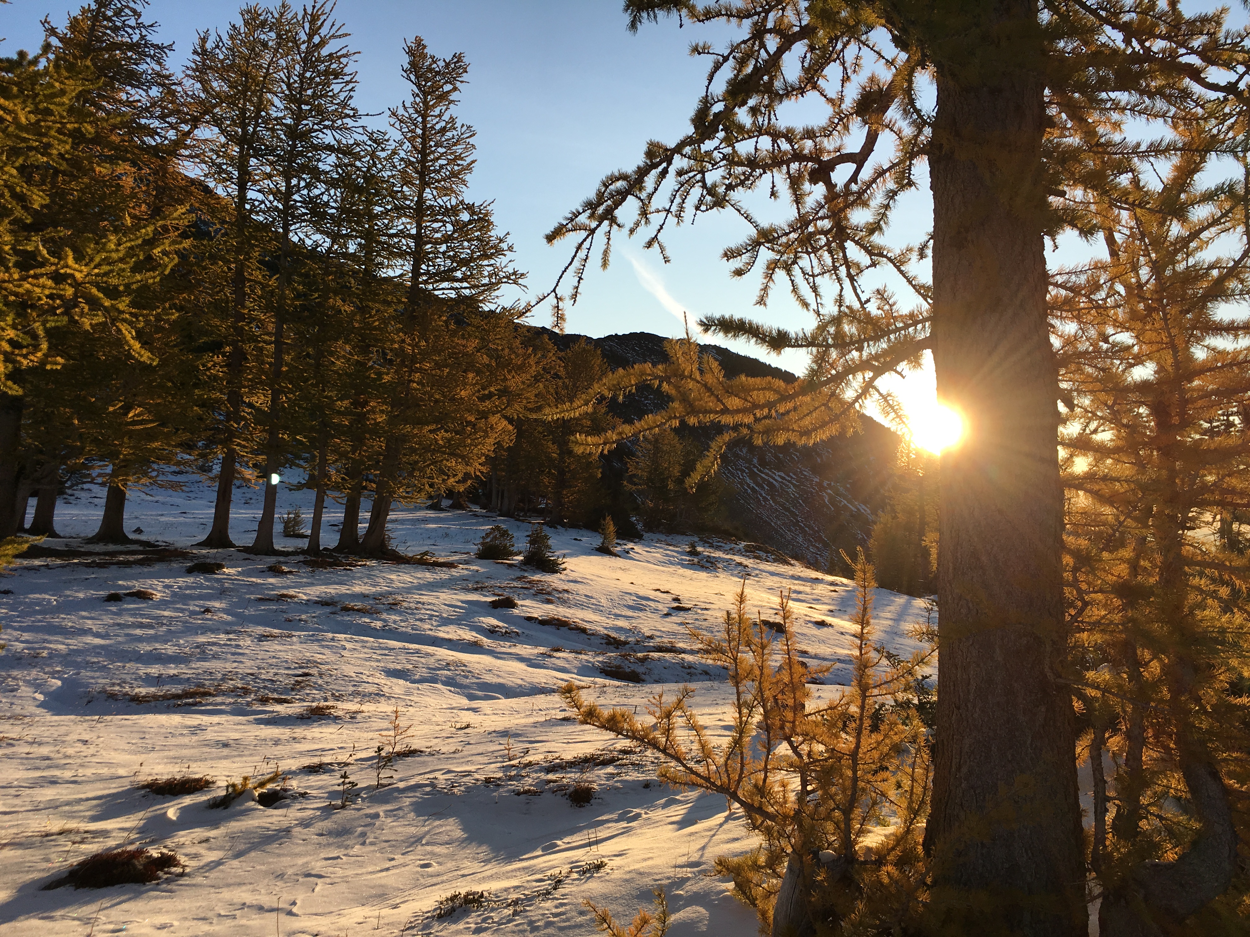 With sun finally in the forecast, Jim and I headed out last Wednesday in hope of seeing some Golden Larch Trees. The forecast was for below freezing temps which we were willing to deal with in exchange for some views.