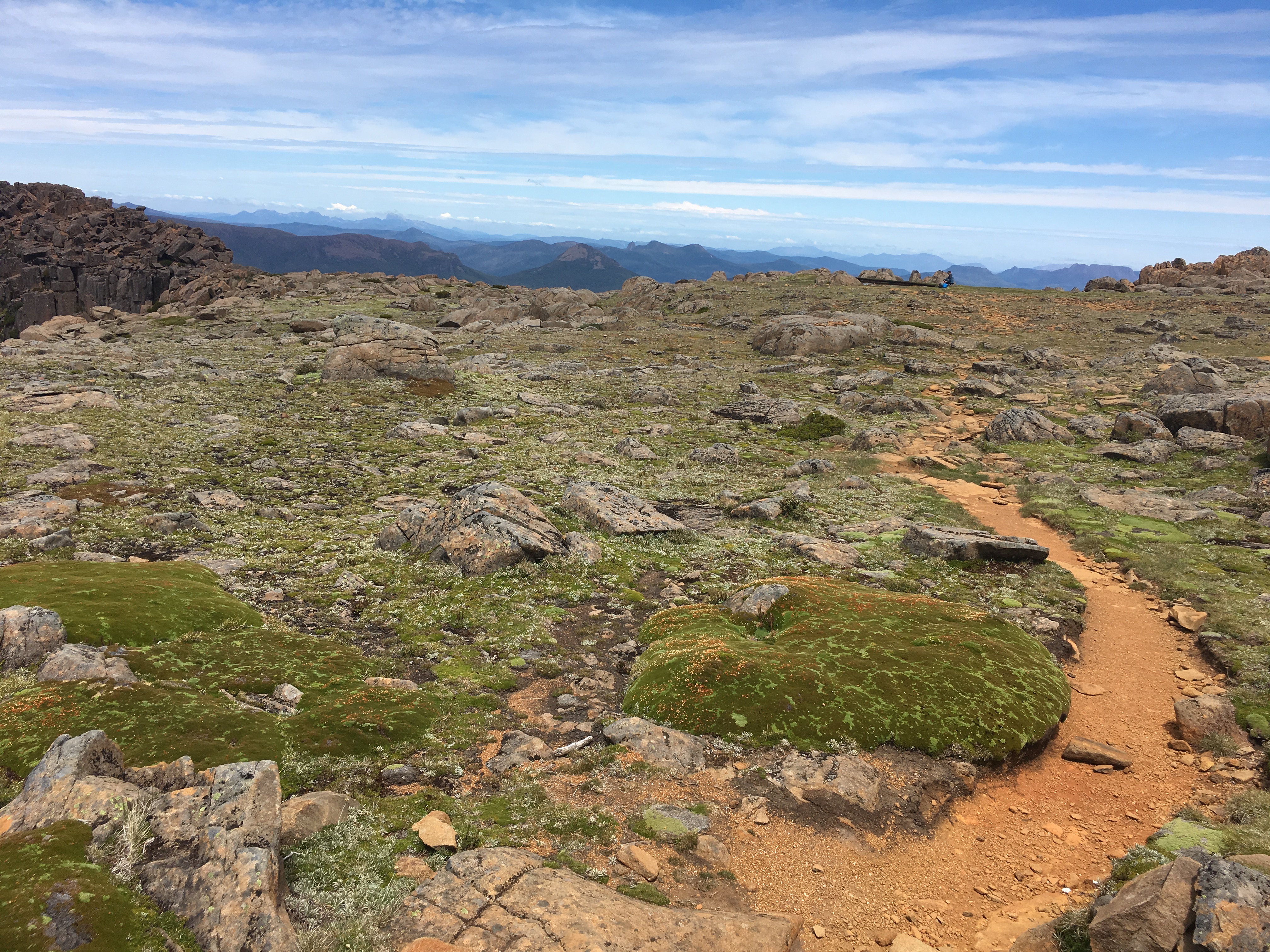 At the gap, Jim and I dropped our backpacks, loaded our summit packs, and head off to climb Mt Ossa, the tallest peak in Tasmania.