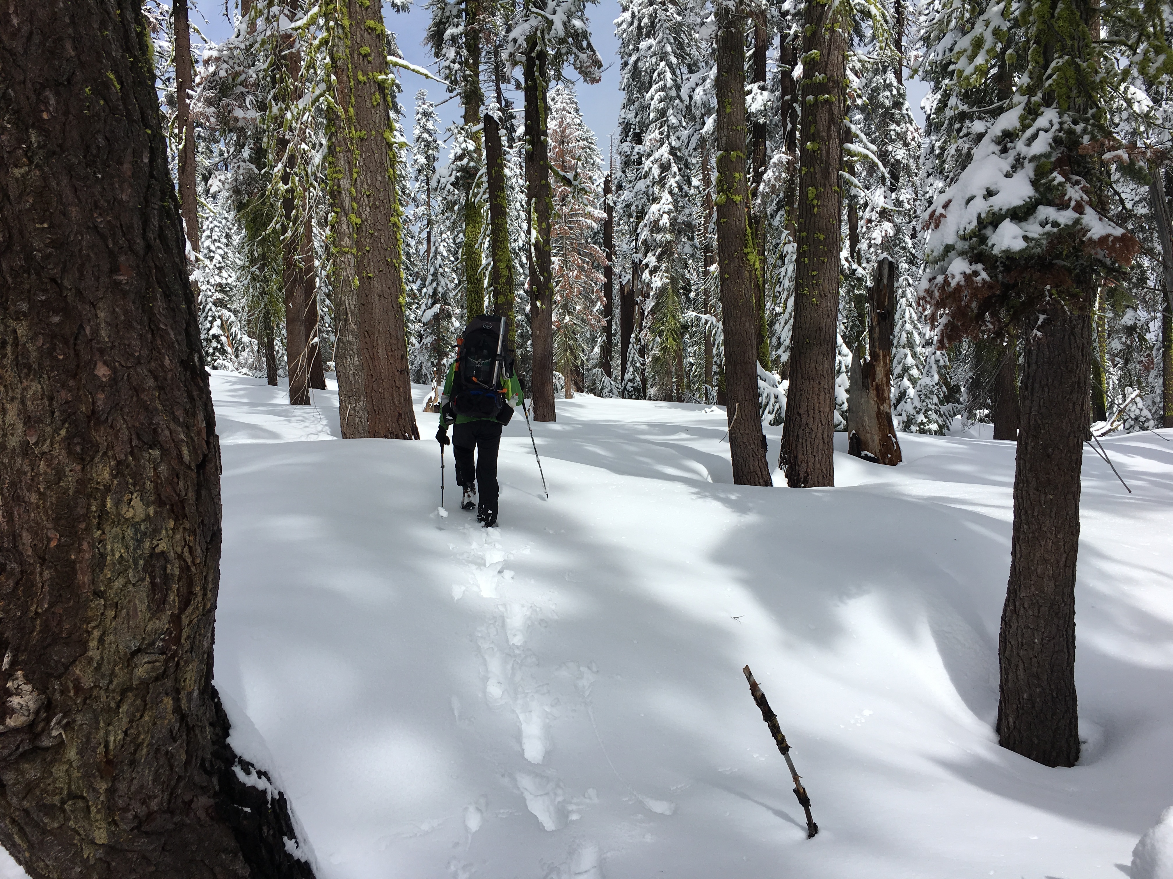 Slowly, 1 by 1 responses to our questions came in… Our weather had gotten worse. We were now in a winter storm warning. Definitely did not want to go back over Buena Vista Pass. No one could find a bridge over the river to Wawona if we went down from here. That left going to the head waters and looking for snow bridges.