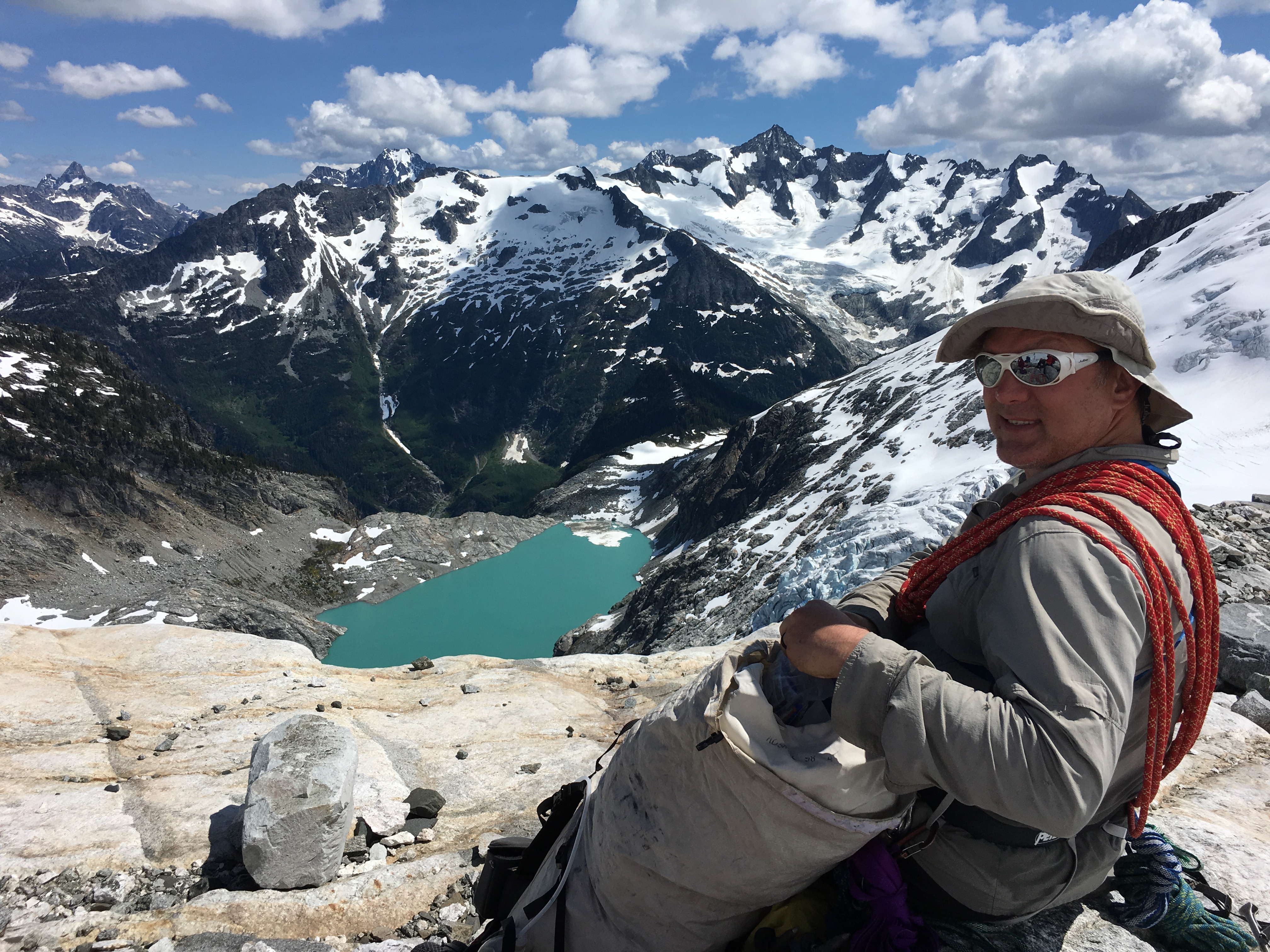 Our camp on the shoulder of Eldorado was quite comfortable with amazing views of Forbidden Peak.