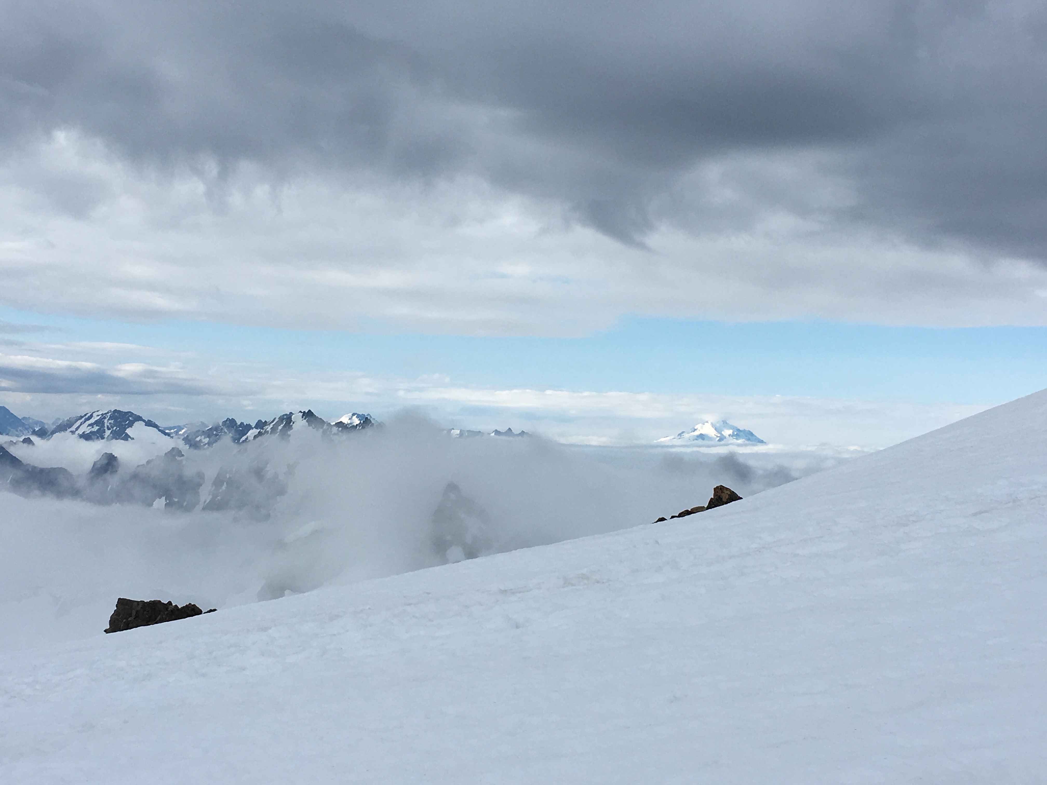In the morning, Lisa, Jim, and I climbed Eldorado. We were just over a 1000 feet from the summit and I had never climbed it. About halfway up the peak, the clouds came in. We didn’t realize at the time that we would spend the next 4 days in and out of the clouds.