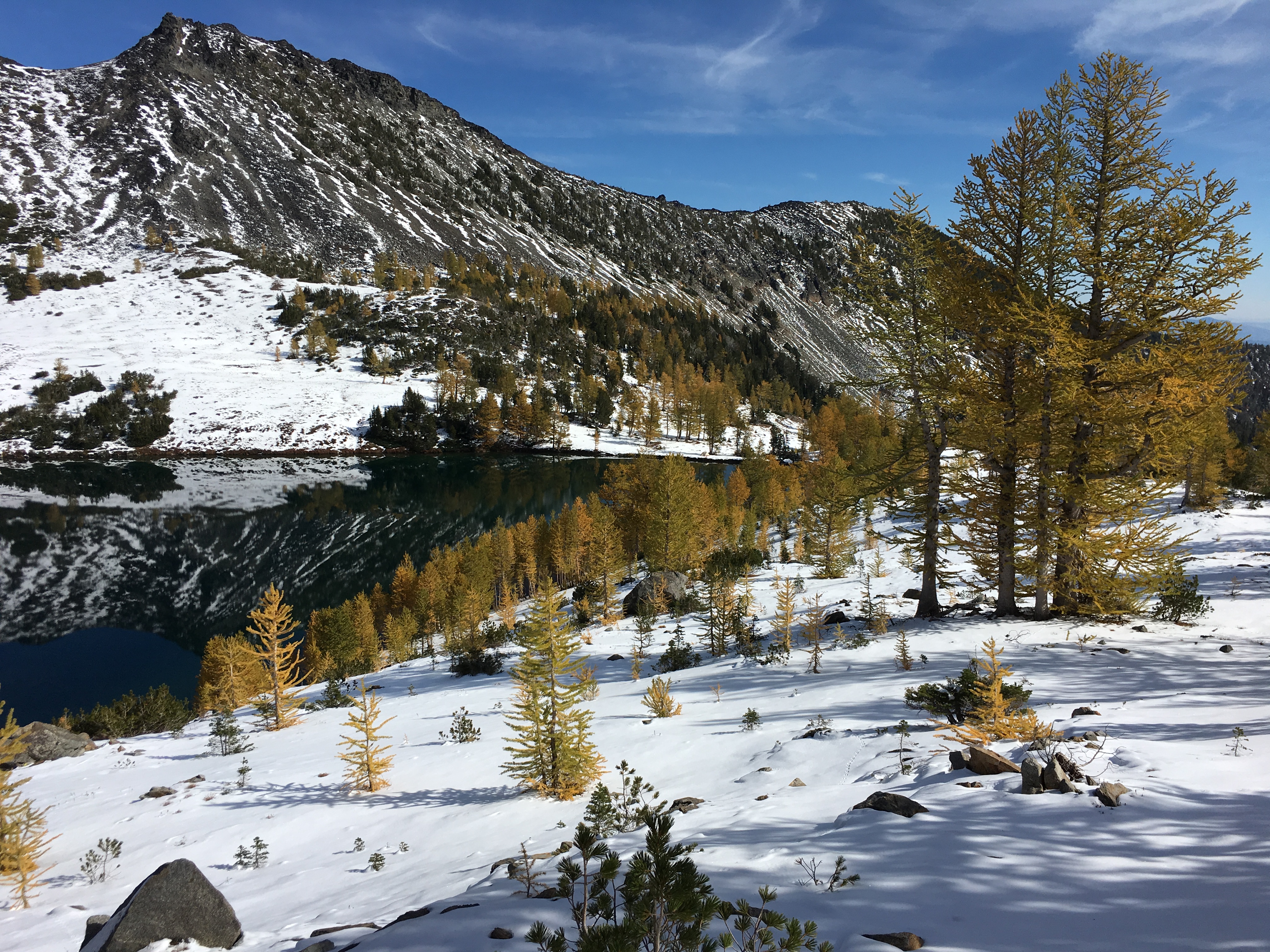 With sun finally in the forecast, Jim and I headed out last Wednesday in hope of seeing some Golden Larch Trees. The forecast was for below freezing temps which we were willing to deal with in exchange for some views.